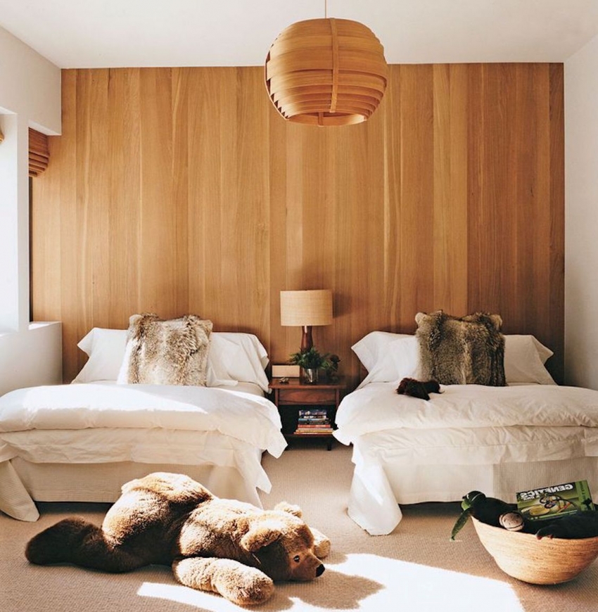 Untuk menghias bilik kanak-kanak, anda boleh menggunakan kertas dinding kayu semula jadi dan mesra alam