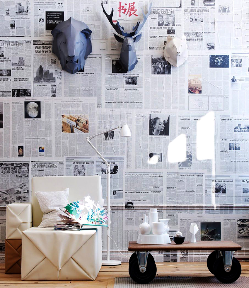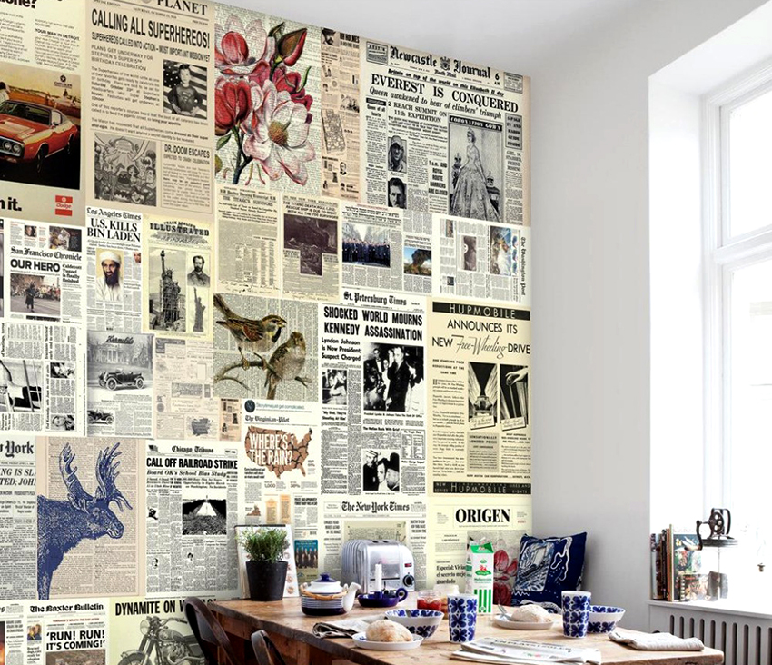 Ramai yang percaya bahawa cetakan surat khabar pada kertas dinding moden "datang" dari masa lalu, ketika produk bercetak ditampal di atas dinding bukan untuk hiasan, tetapi untuk tujuan teknikal: untuk menyembunyikan kecacatan, untuk mengikat lapisan atas permukaan terpampang, dll. Sejarah penampilan kaedah hiasan ini di sini kes tidak begitu penting. Perkara utama ialah kertas dinding untuk surat khabar menyumbang kepada penciptaan ruang dalaman yang menarik.