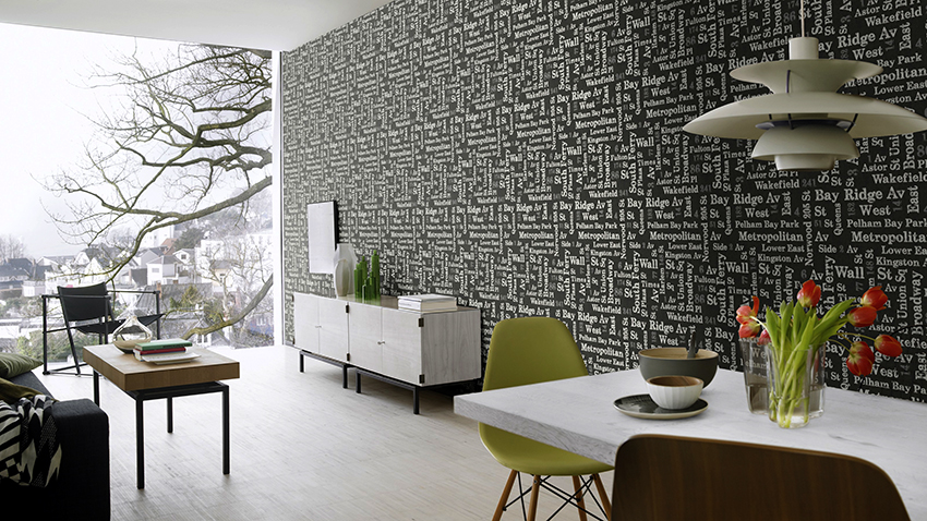 Selalunya, kertas dinding hitam dengan prasasti putih digunakan untuk hiasan. Pilihannya berbeza dalam pelbagai fon dan kandungan: