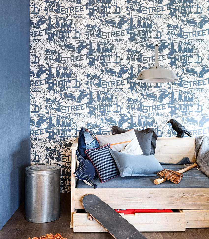 Dalam koleksi kertas dinding untuk belia, anda boleh menemui banyak pilihan produk yang terang dan menarik.