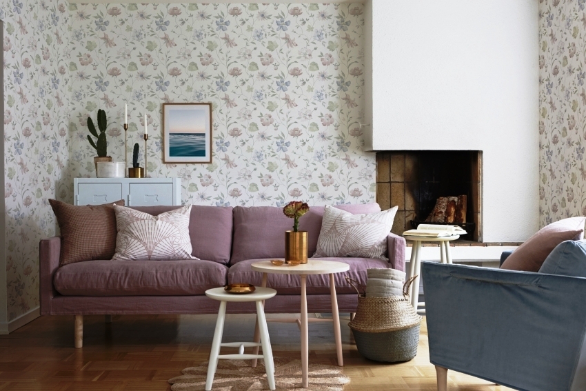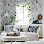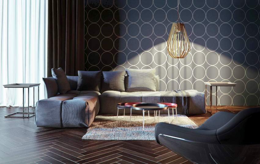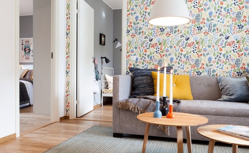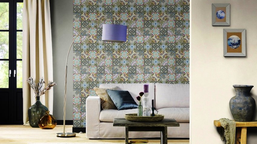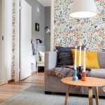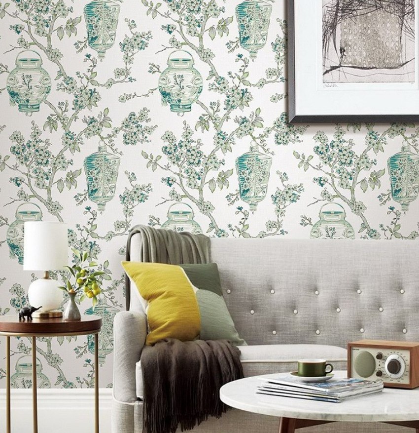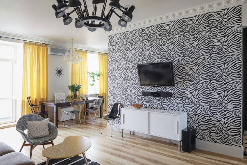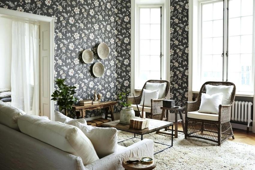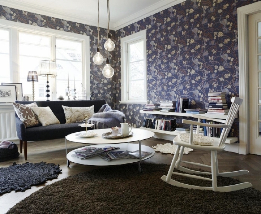 Kertas dinding moden untuk ruang tamu boleh menjadi tradisional, berasaskan kertas, atau boleh dicuci, berdasarkan bahan lain.