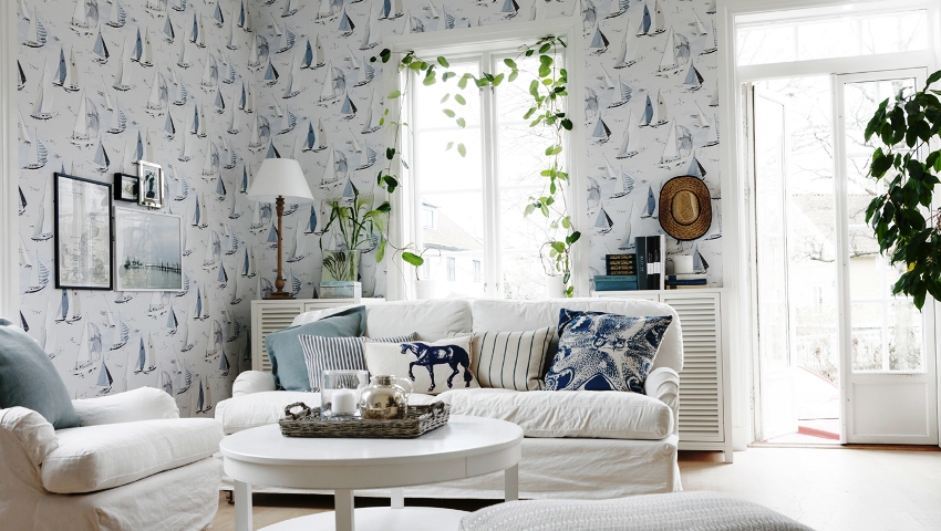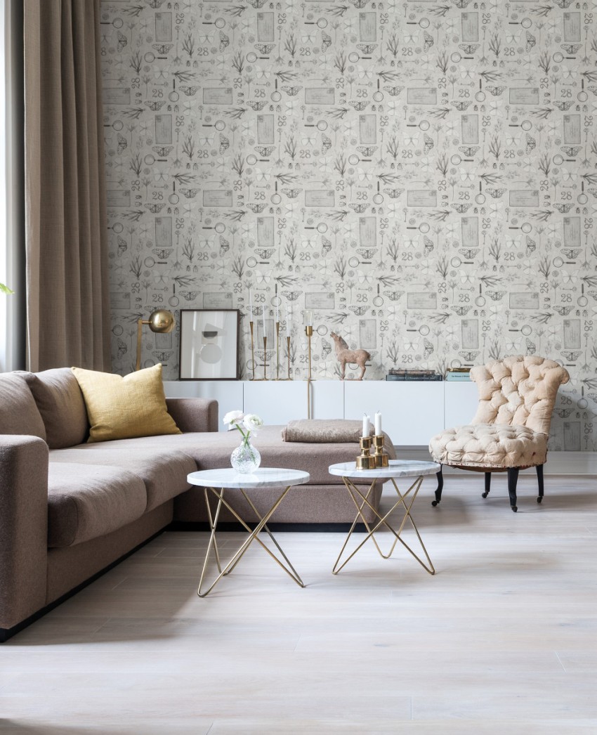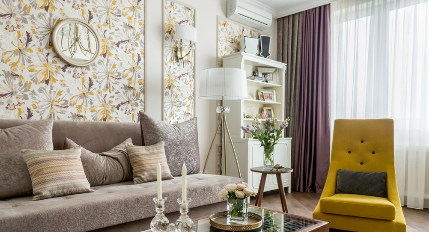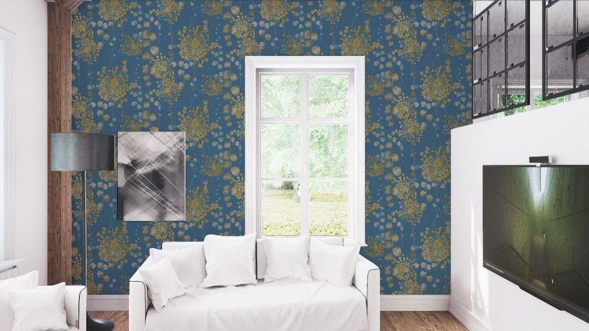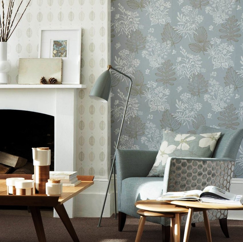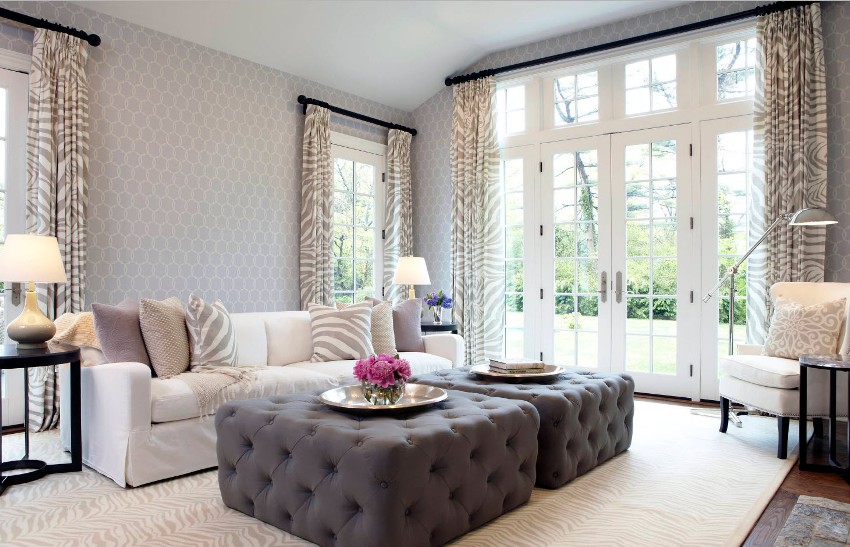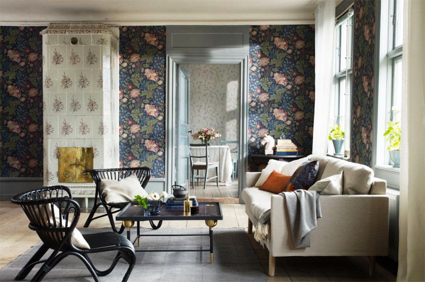 Kertas dinding moden untuk ruang tamu boleh menjadi tradisional, berasaskan kertas, atau boleh dicuci, berdasarkan bahan lain.