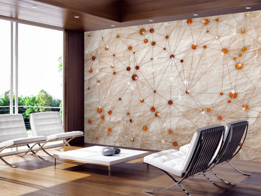 Kertas dinding moden untuk ruang tamu: keperluan hiasan