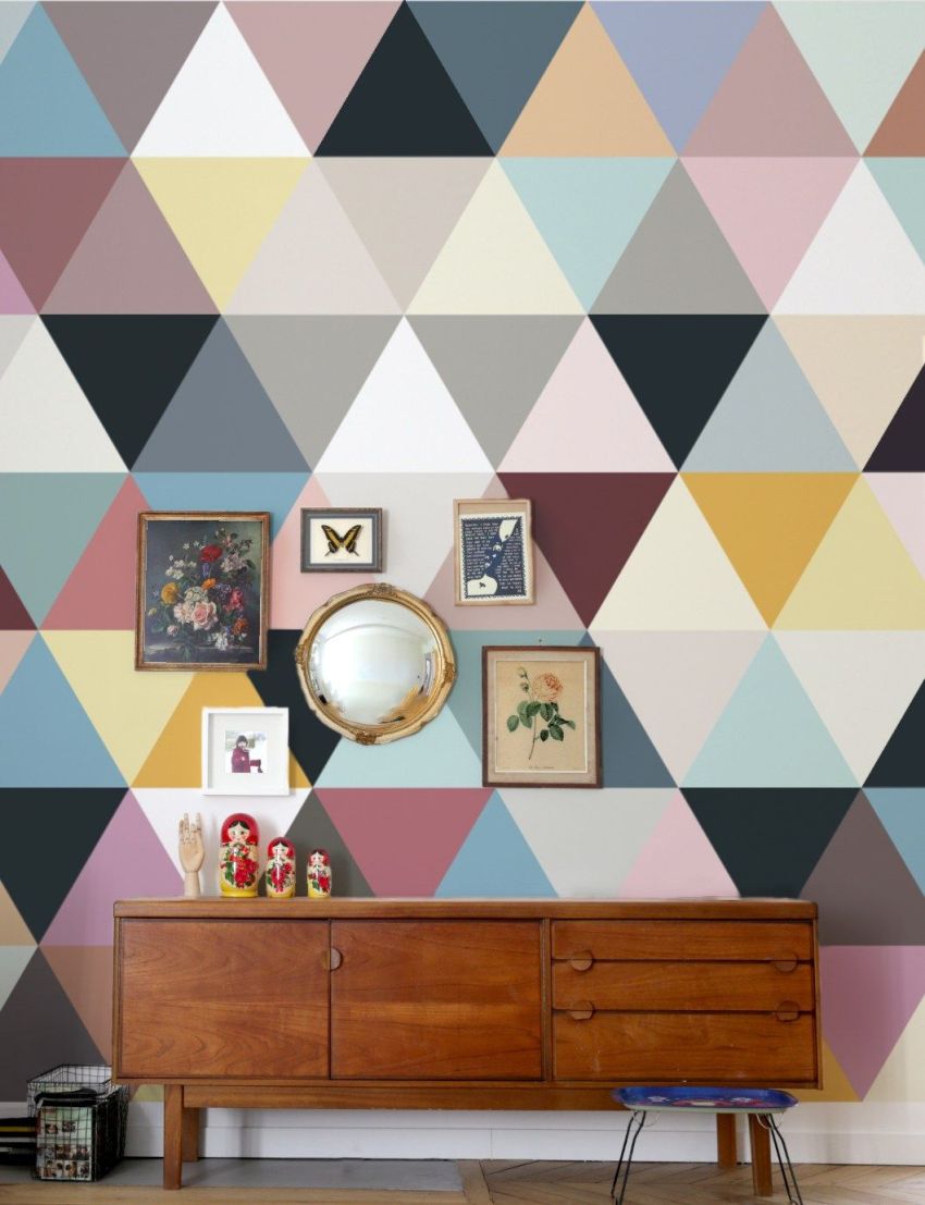 Anda juga boleh membuat kertas dinding bergaya untuk dinding dengan tangan anda sendiri - gunakan gambar.