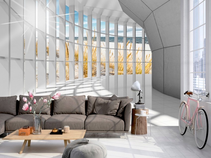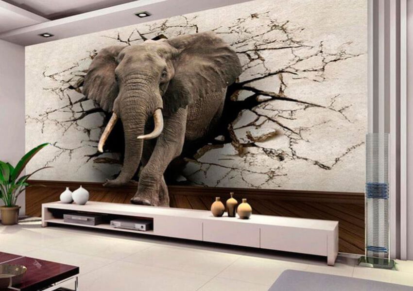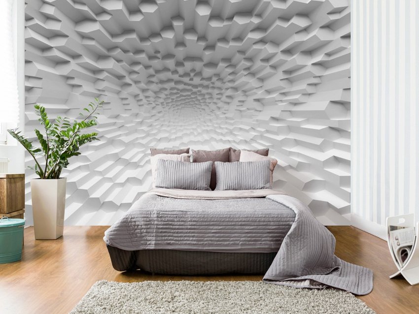 Kesan 3D untuk reka bentuk: kertas dinding volumetrik untuk dinding