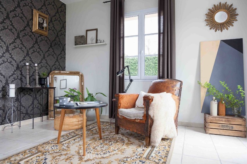 - perbezaan antara corak kertas dinding dan gaya barang dalaman yang lain akan memperkenalkan rawak dan rasa tidak sedap.