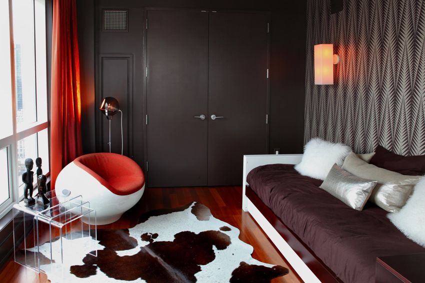 Anda tidak boleh melepaskan kertas dinding dengan gaya moden jika ruangan itu mempunyai ceruk, dinding kecil atau ciri susun atur lain yang menyulitkan reka bentuk dinding. Vinil tipis monokromatik atau bercorak halus, serta kertas dinding yang ditenun dari serat semula jadi, akan mengatasi tugasnya: kawasan yang kompleks akan berubah dari bermasalah menjadi penambahan dalaman yang menarik.