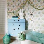 Corak kertas dinding untuk taman asuhan kanak-kanak tidak boleh terang di seluruh kawasan bilik Hanya beberapa serpihan dinding yang harus dihiasi dengan warna yang kaya. Tayar cepat berubah-ubah. Anda boleh memilih kertas dinding hijau atau kuning yang tenang untuk bilik kanak-kanak. Matte pink, susu, kuning air akan menyenangkan. Adalah wajar untuk menghidupkan semula tapak semaian dengan tekstil dengan cetakan, mainan berwarna-warni.