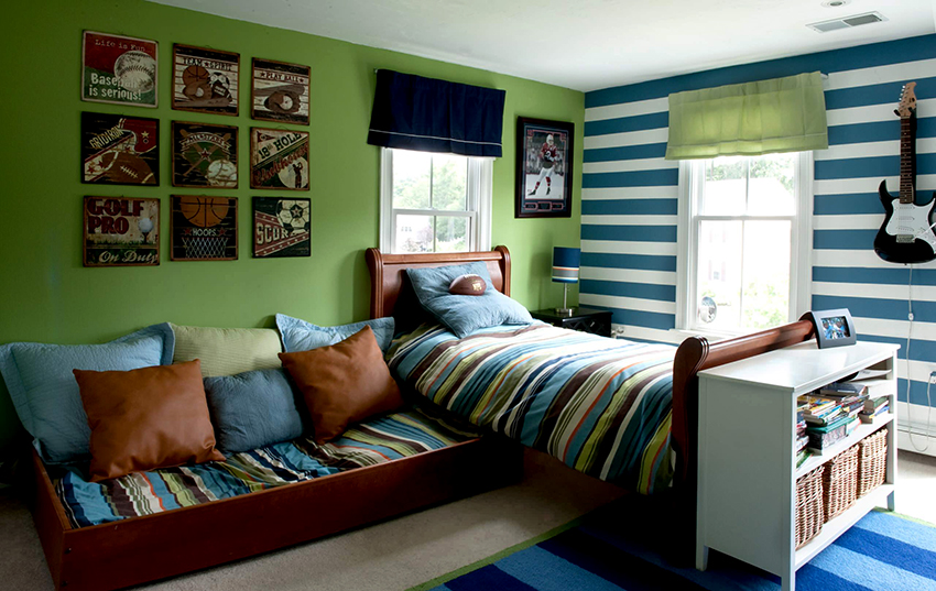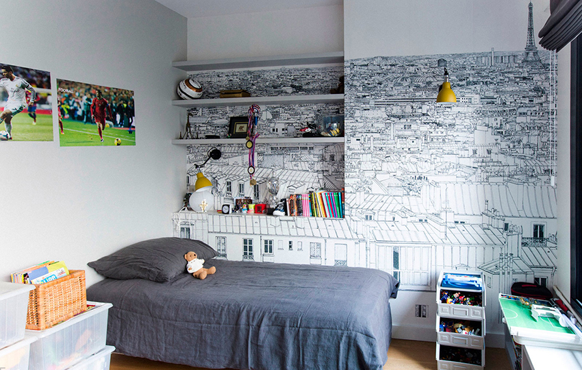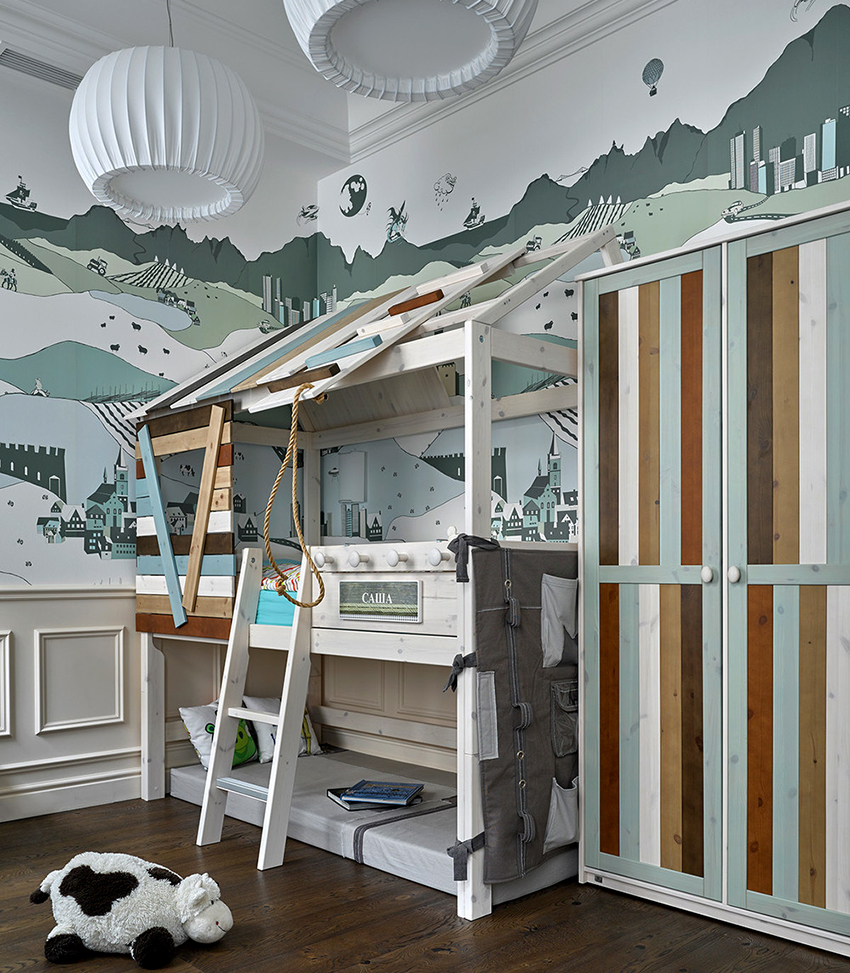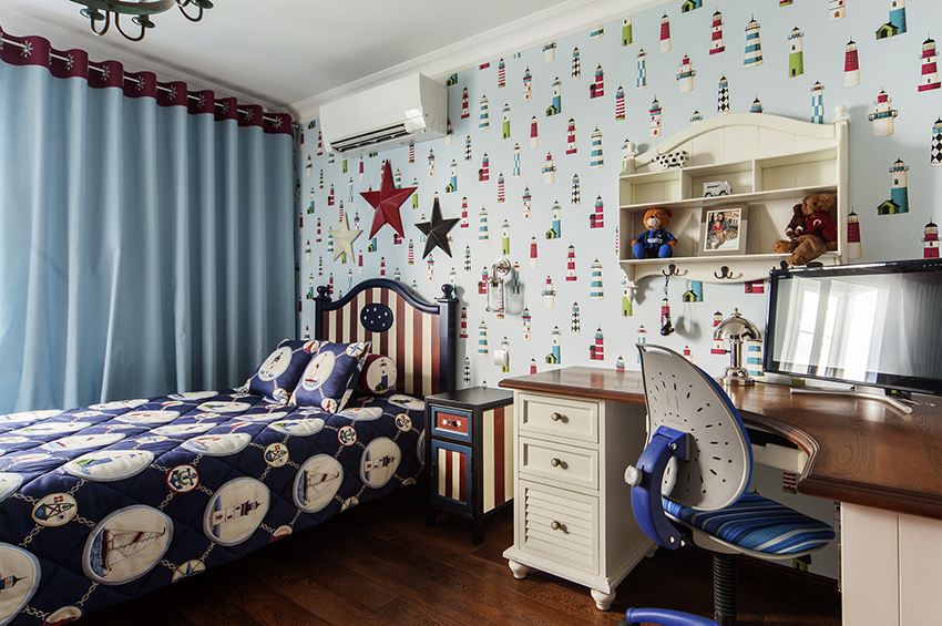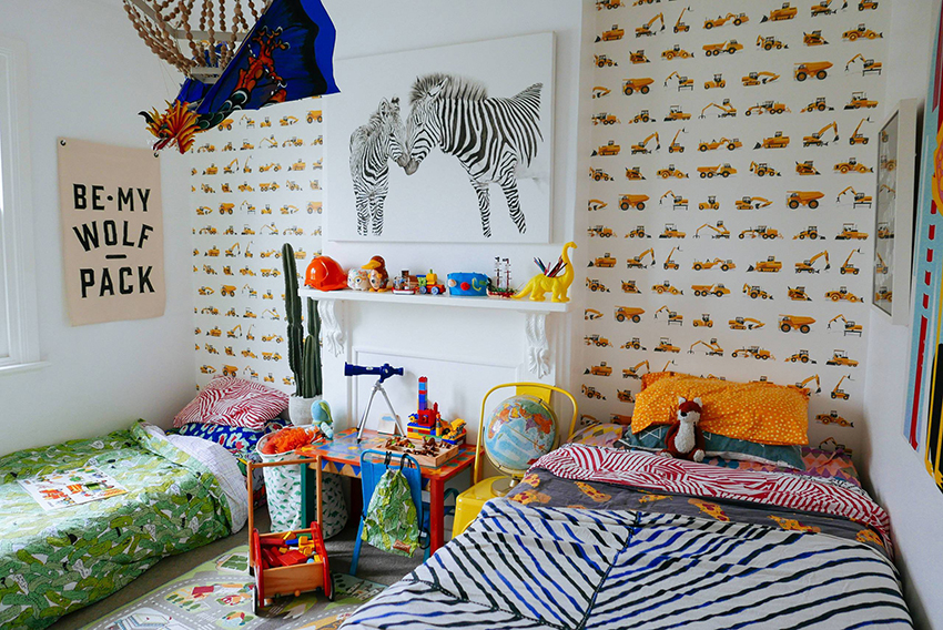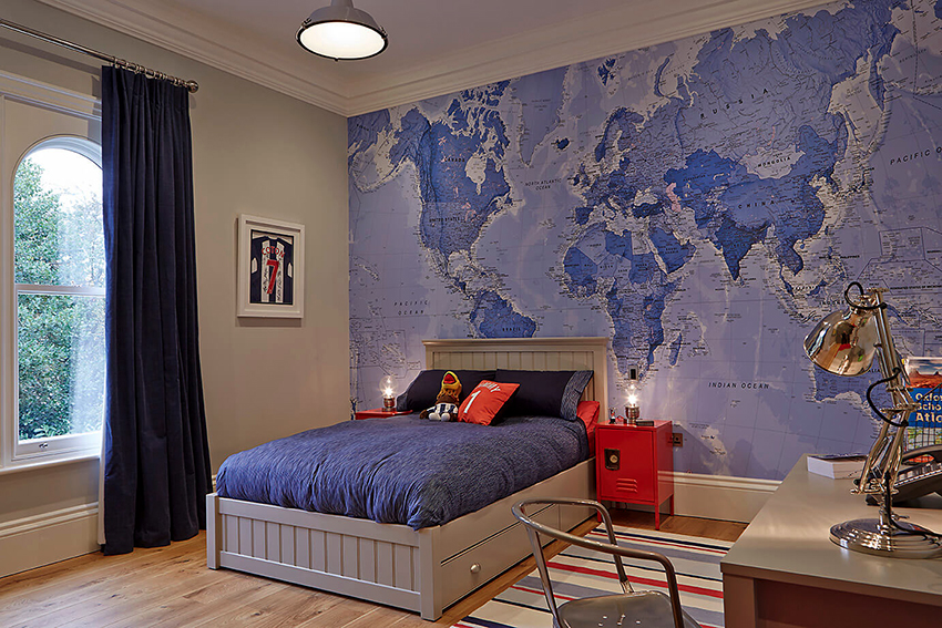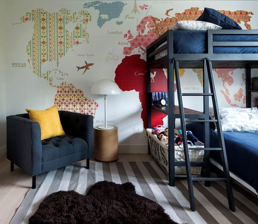 Pilihan kertas dinding kanak-kanak di dalam bilik untuk budak lelaki