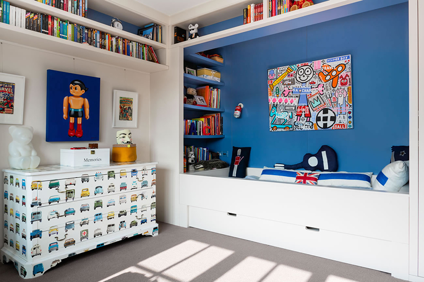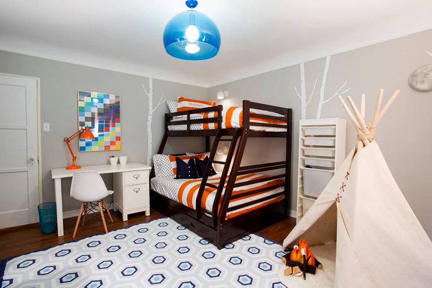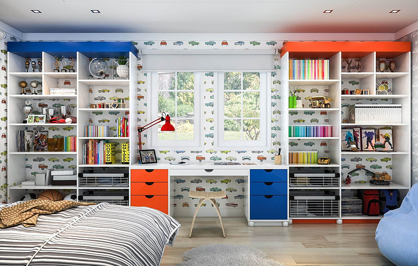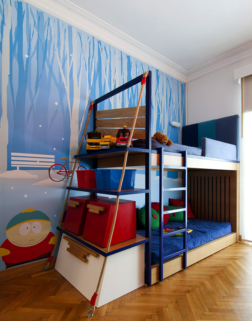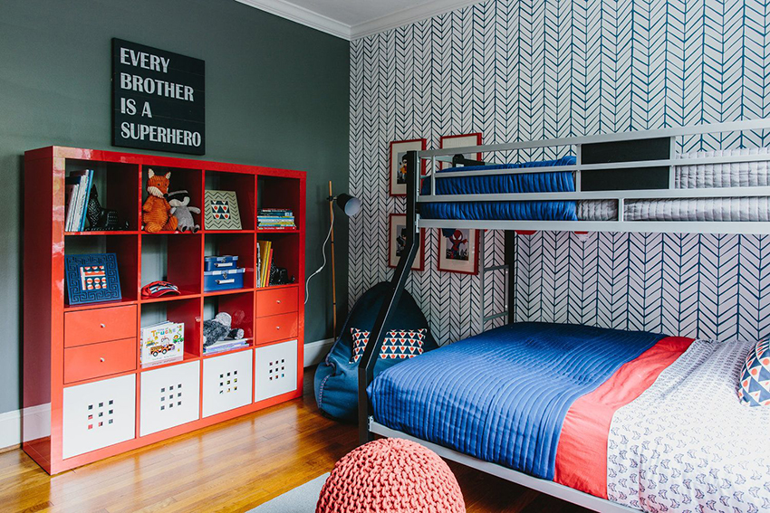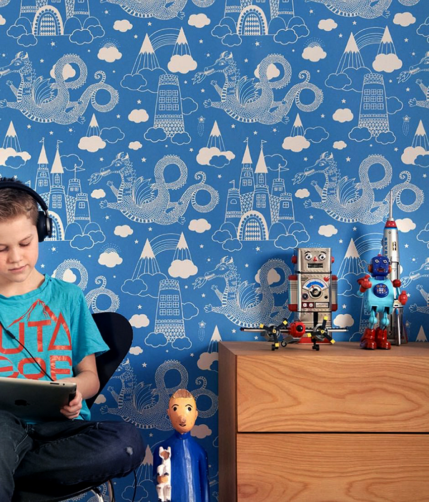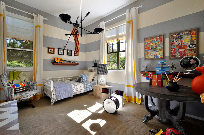 Pilihan kertas dinding kanak-kanak di dalam bilik untuk budak lelaki