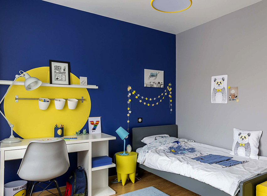 Warna sejuk dapat menekankan keselesaan bilik. Palet yang tenang dan seimbang membantu memberi tumpuan dan menyesuaikan diri dengan belajar.