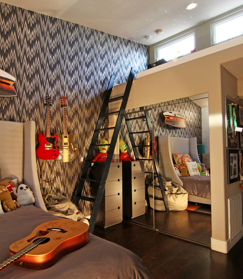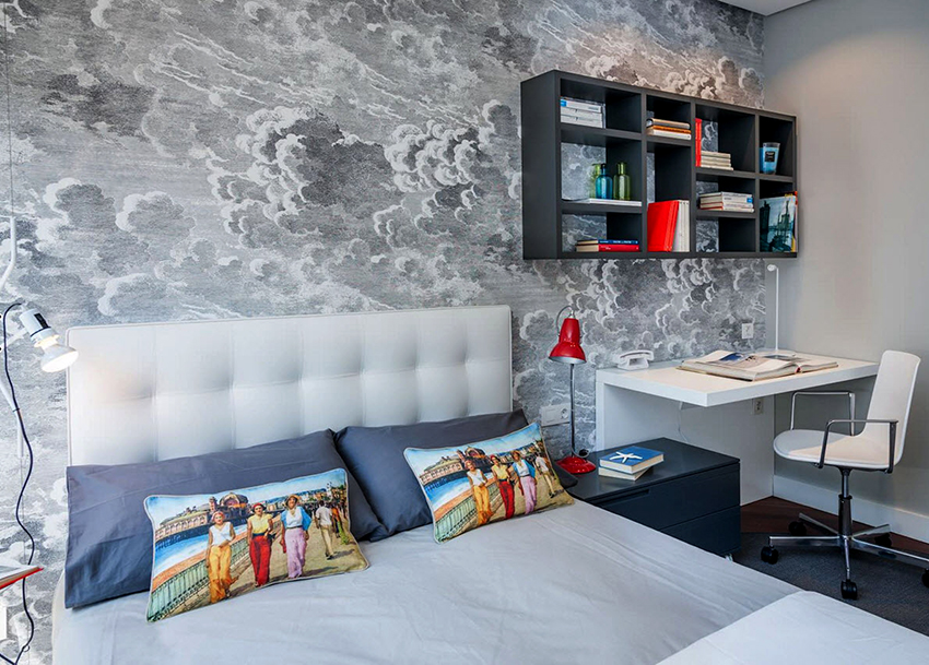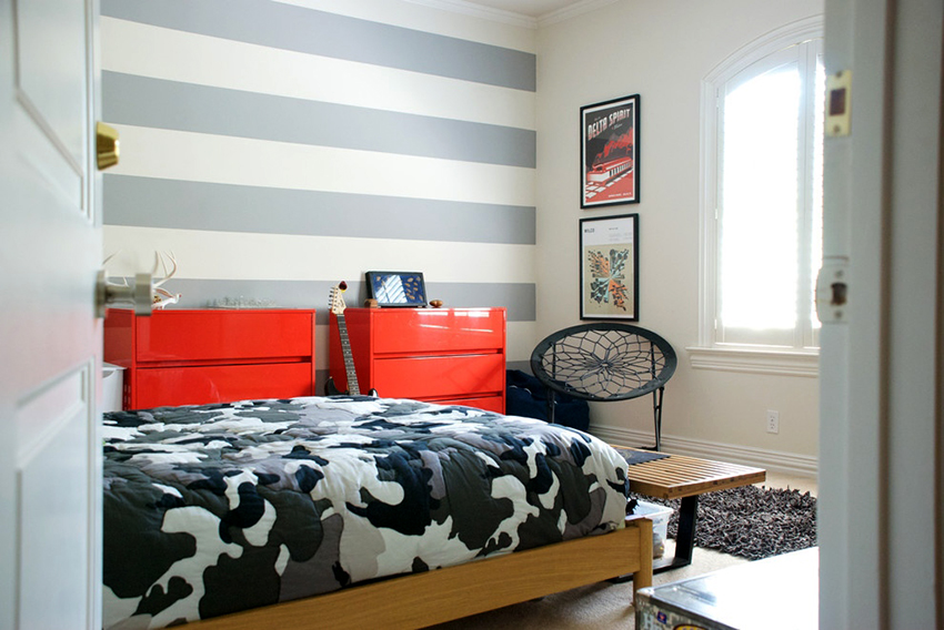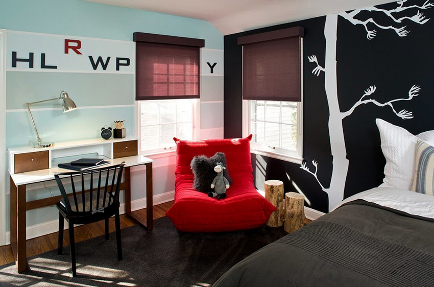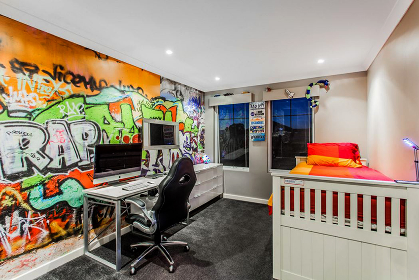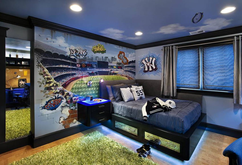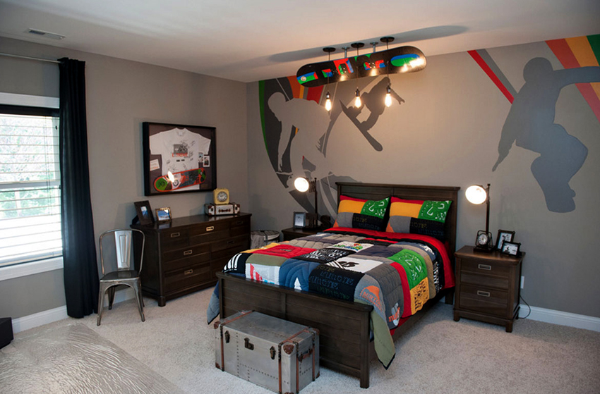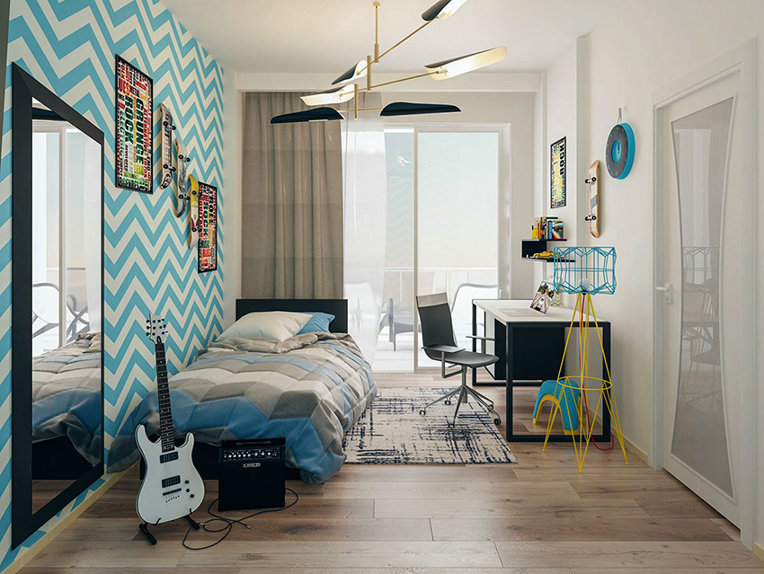 Kertas dinding untuk bilik remaja lelaki dipilih dengan gambar yang sesuai dengan hobi anak. Ilustrasi khas boleh digunakan di sini pada salah satu tema, seperti sukan, teknologi, muzik, kereta, grafiti atau komposisi bandar.
