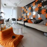 Pilihan reka bentuk yang popular dan harga purata. Kombinasi warna dan prinsip penggunaan yang menarik di bahagian dalam bilik yang berbeza.