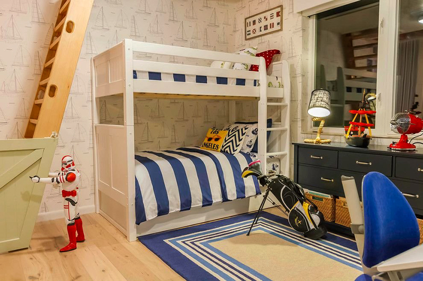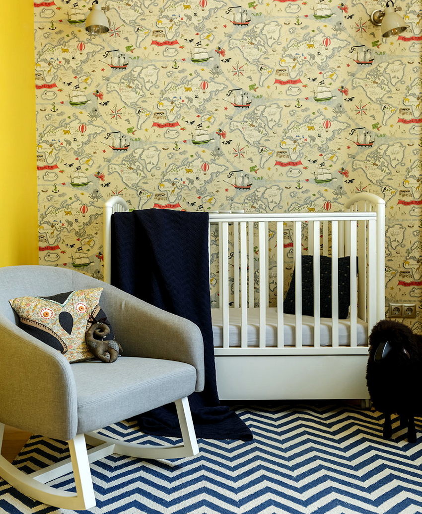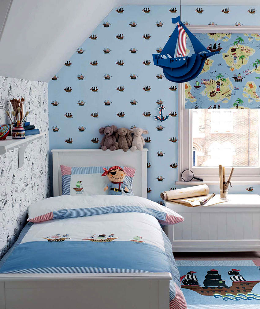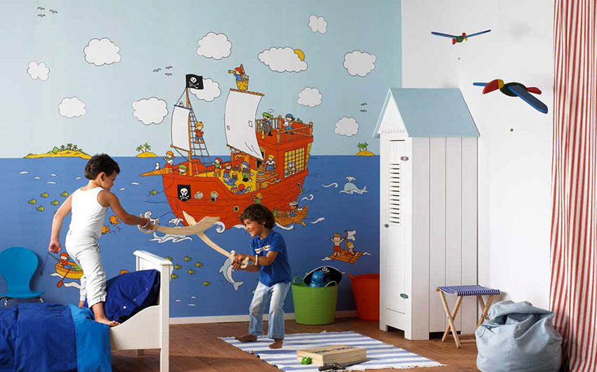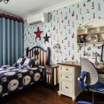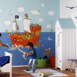 Terdapat topik yang berasingan untuk kanak-kanak lelaki. Ramai orang suka reka bentuk nautika. Pada kertas dinding untuk bilik budak lelaki itu, ikan, kapal, pemandangan pantai, pemandangan dengan harta laut dapat digambarkan.