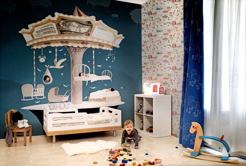 Pilihan kertas dinding di tapak semaian sesuai dengan usia kanak-kanak