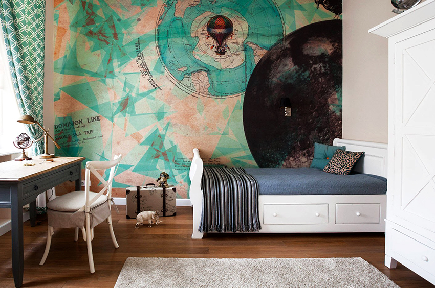 Selain kertas dinding kanak-kanak tradisional, terdapat produk dengan kesan luar biasa yang menyumbang kepada suasana dalaman yang cerah dan memberi inspirasi.