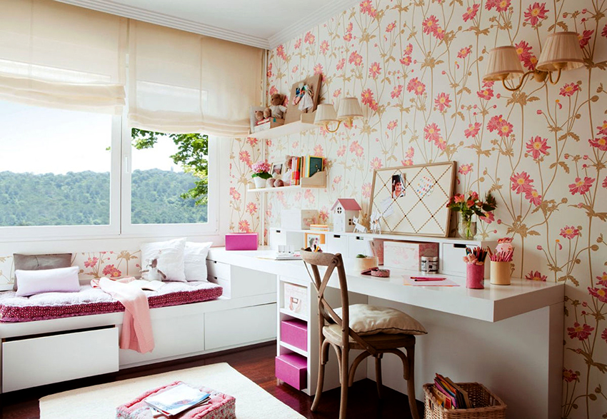 Seorang pelajar sekolah boleh mengembangkan hobi dan hobi, yang subjeknya harus dicerminkan dalam pilihan produk. Bagi mereka yang suka difoto, anda boleh memesan kertas dinding dengan foto peribadi. Bagi pelancong kecil, produk dengan gambar bandar sesuai. Menginap di persekitaran yang sesuai akan memastikan bahawa anak itu tidak meninggalkan hobinya separuh jalan. Kertas dinding gambar dengan hiasan bunga atau tumbuhan, bunga tunggal atau sejambak kelihatan harmoni. Komposisi yang menarik dapat dilihat pada gambar wallpaper di bahagian dalam bilik kanak-kanak.