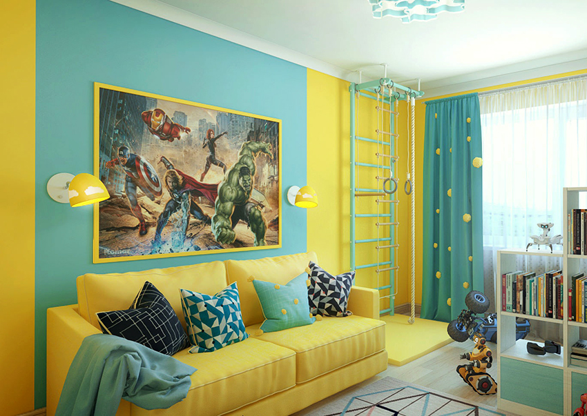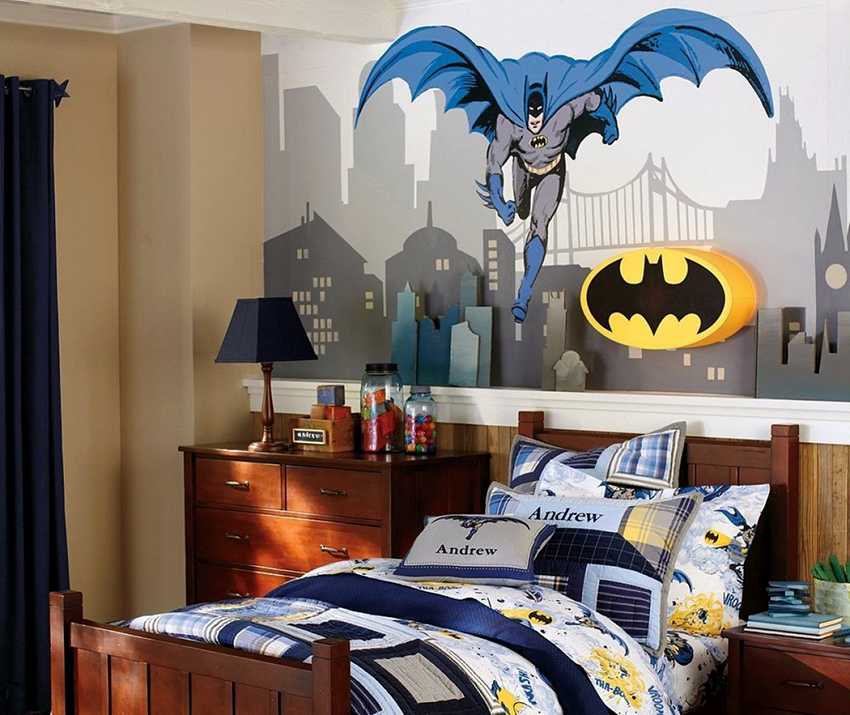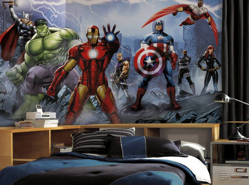 Setiap budak lelaki mempunyai superhero kegemaran. Di ruangan, anda boleh melekatkan kertas dinding foto dengan gambarnya. Keputusan sedemikian dapat mendorong anak lelaki itu ke awal yang baru atau mempengaruhi pembentukan beberapa sifat watak. Yang popular adalah mural dinding di taman asuhan kanak-kanak lelaki dengan Spider-Man, Batman, Superman. Kanvas yang terang harus bertindih dengan elemen hiasan dalaman.