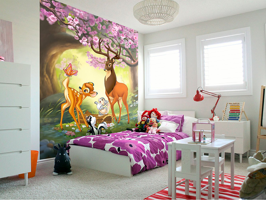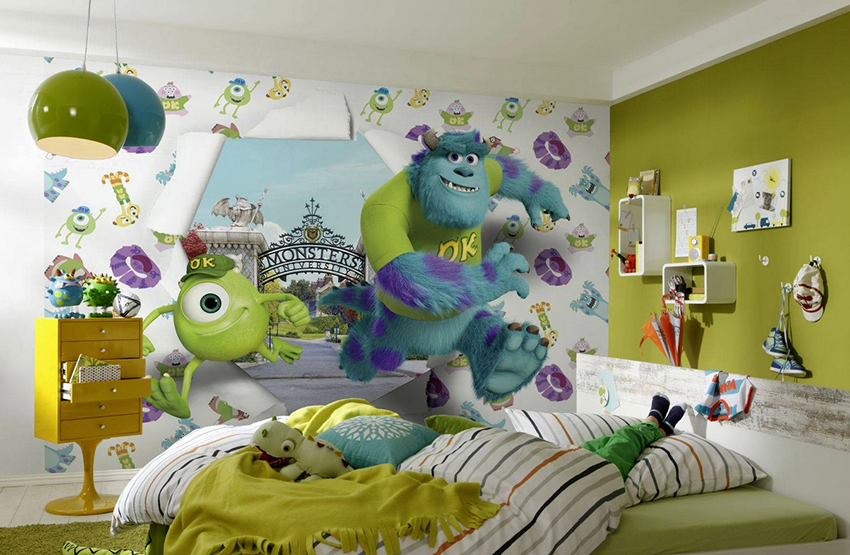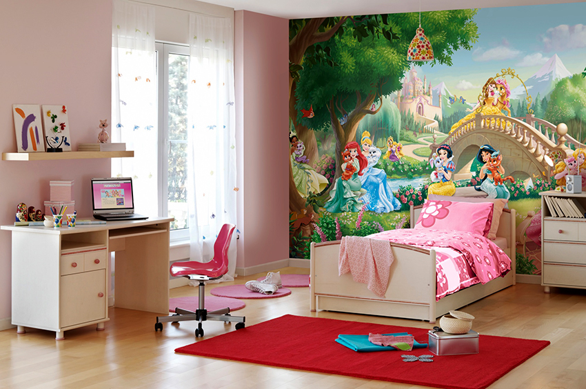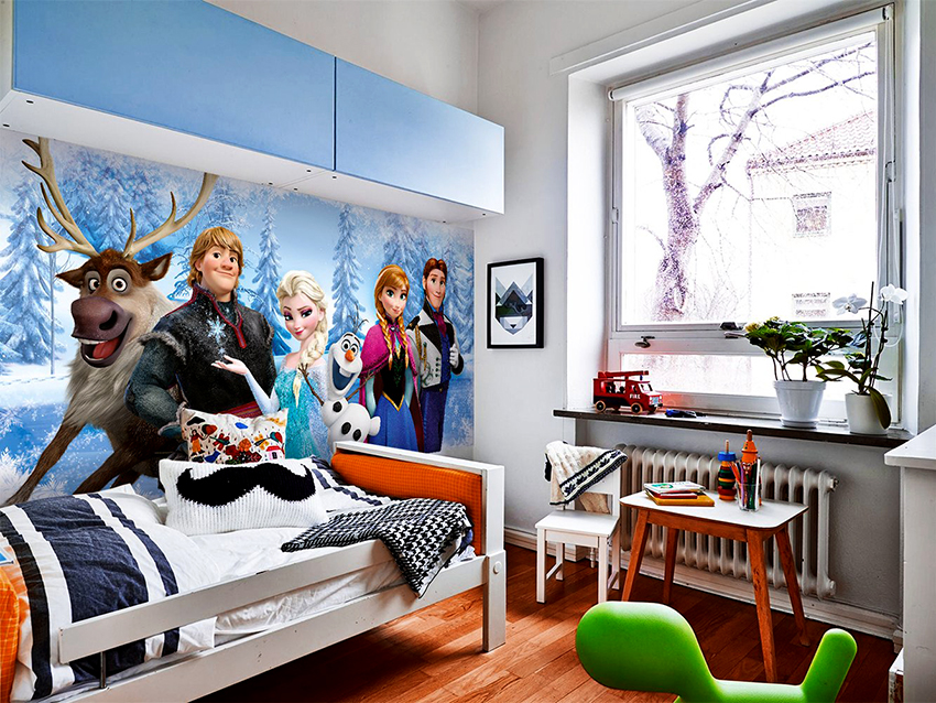 Tema kartun kegemaran tidak kurang popular. Terdapat banyak pilihan untuk kertas dinding Disney yang boleh anda gunakan untuk menampal di semua dinding atau membuat aksen terang di dalam bilik. Kanak-kanak perempuan akan menyukai produk dengan puteri, dan kanak-kanak lelaki dengan lanun, robot dan superhero. Anda boleh melekatkan kertas dinding Mobil, kanvas dengan pemandangan dari kartun "Madagascar", "Nemo", "Shrek" dan lain-lain di bilik kanak-kanak.