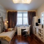 Nasihat berguna! Untuk bilik kecil, lebih baik memberi keutamaan kepada kertas dinding terang dengan corak kecil pada latar belakang yang terang.