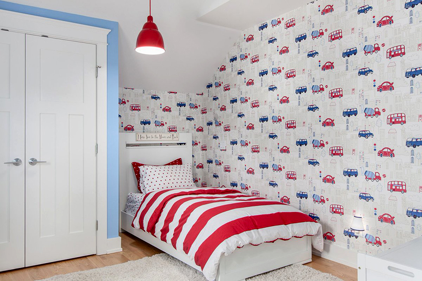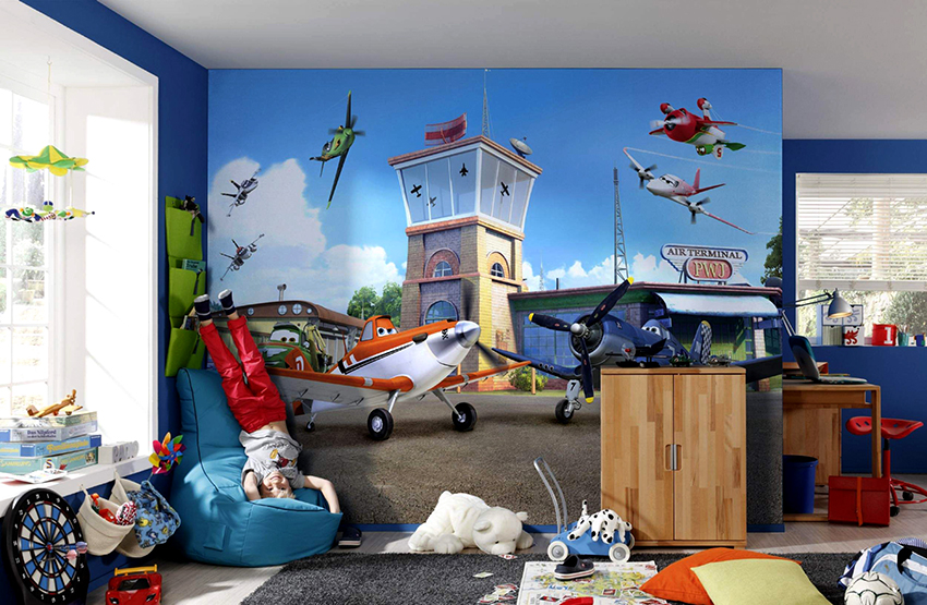 Untuk kanak-kanak lelaki berumur lebih dari 3 tahun, anda boleh memilih kertas dinding yang lucu dan terang