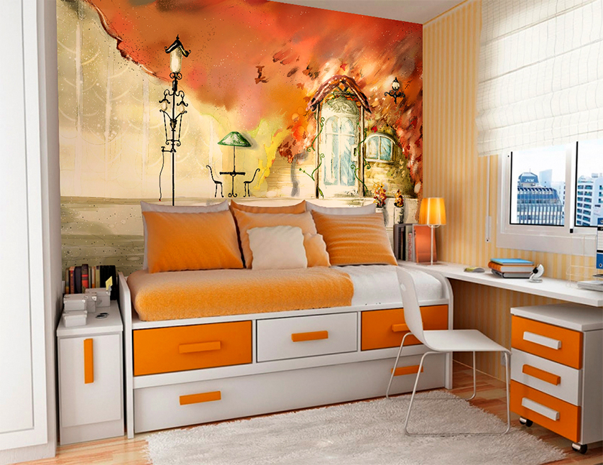 Bagi remaja, anda tidak seharusnya memilih pilihan kanak-kanak. Penting untuk memusatkan perhatian pada keinginan dan pilihan peribadi, dengan penekanan pada percintaan, kreativiti atau hobi seorang gadis. Gambar kertas dinding yang indah dengan gambar jalan-jalan di Venice dan Paris, bunga, hati atau pasangan cinta akan dilakukan. Kertas dinding gambar dengan gadis cantik, model foto kelihatan tidak biasa.