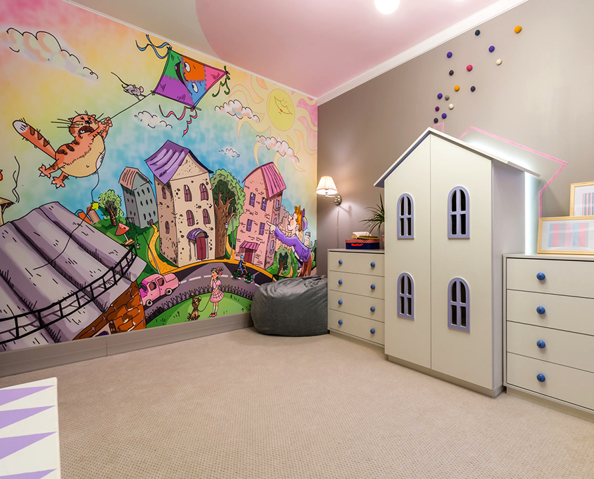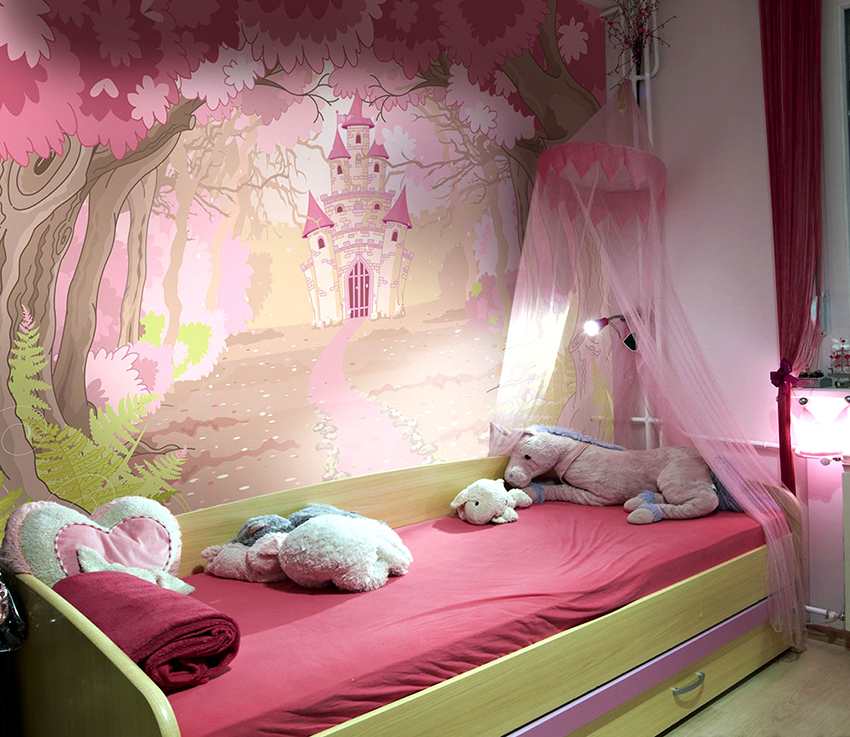 Memilih tema untuk kertas dinding di taman asuhan kanak-kanak perempuan
