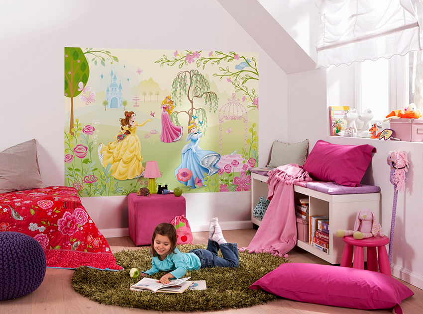 Untuk kanak-kanak perempuan berumur lebih dari 5 tahun, kertas dinding foto dengan potret watak kartun atau dongeng disyorkan. Ini boleh menjadi Cinderella, The Little Mermaid, Thumbelina, Snow White, boneka Barbie, peri Winx dan watak-watak lain.