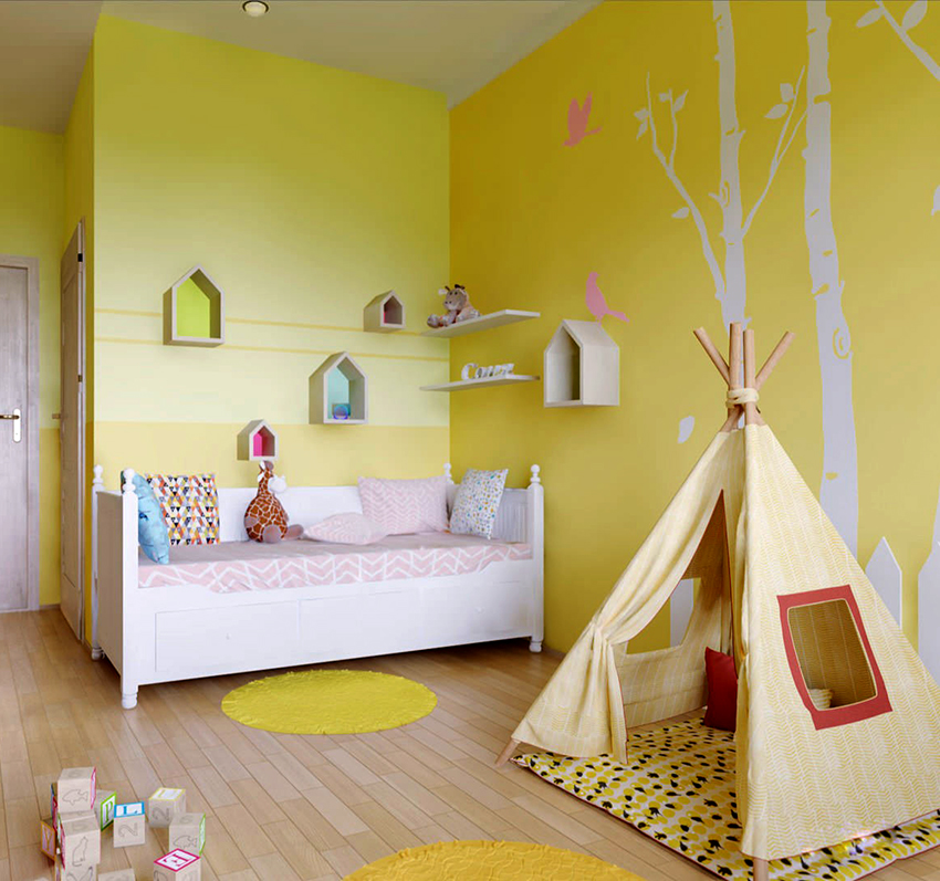 Palet warna mempengaruhi keadaan psikologi kanak-kanak. Menurut ahli psikologi, warna kuning mempunyai kesan yang paling menguntungkan, yang membangkitkan keinginan untuk belajar, realisasi diri, penemuan dan pencapaian baru, dan membawa keceriaan ke ruangan. Warna hijau menenangkan dan merangsang keinginan untuk berkembang.