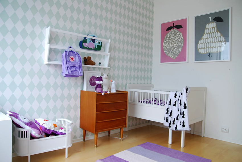 Nasihat berguna! Di bilik kanak-kanak, anda tidak boleh merekatkan kertas dinding dengan corak besar, yang secara visual mengurangkan ruang dalaman, menimbulkan rasa tidak selesa di dalam bilik.