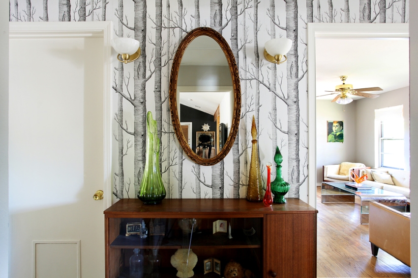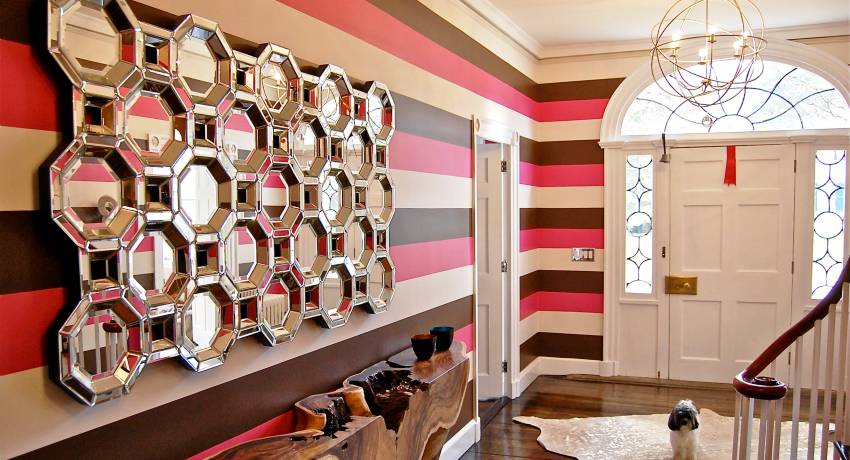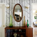 - Memasang cermin di dinding yang ditutup dengan kertas dinding akan meningkatkan ruang secara visual.