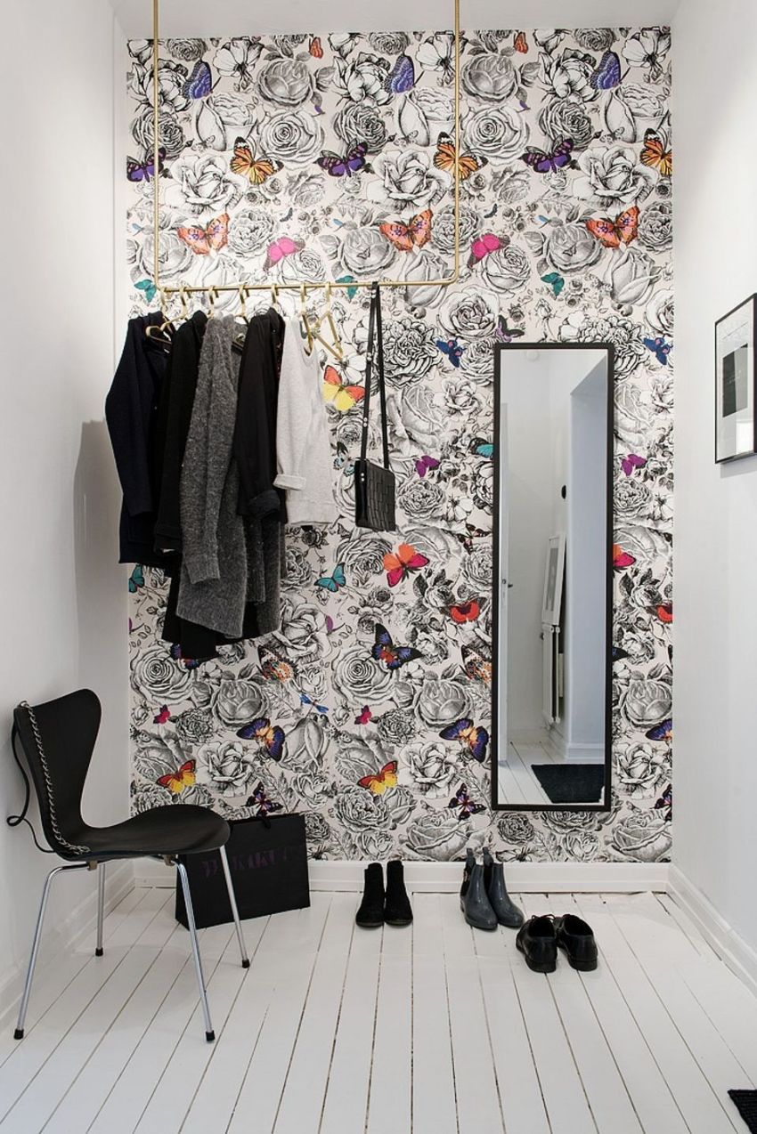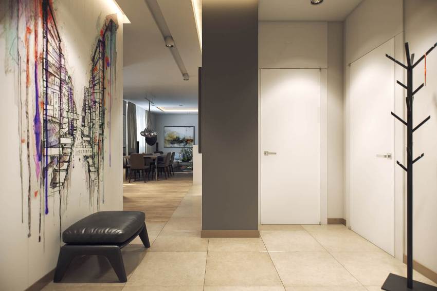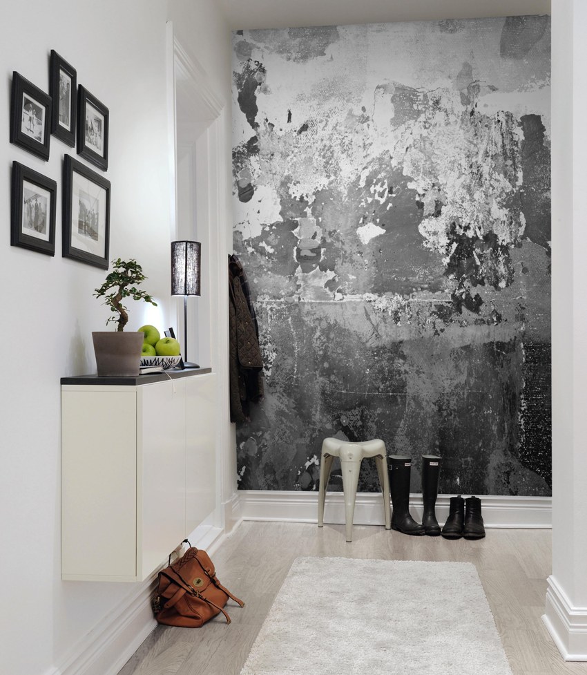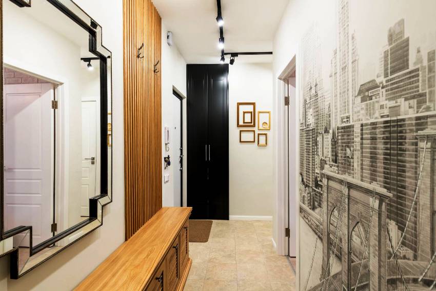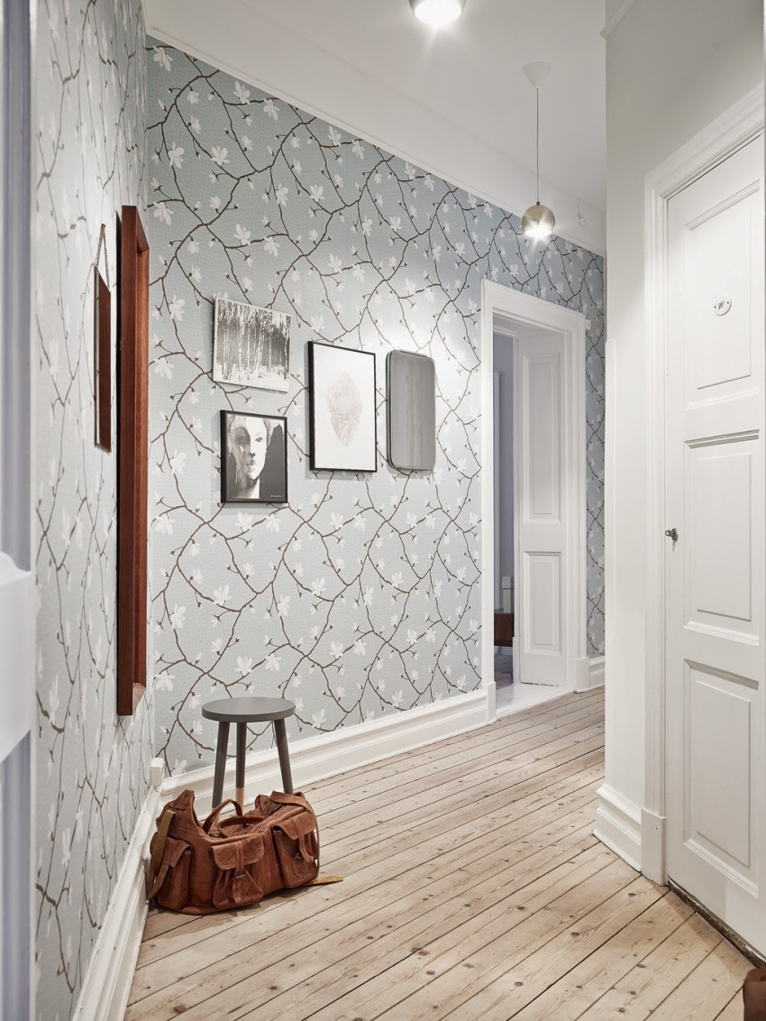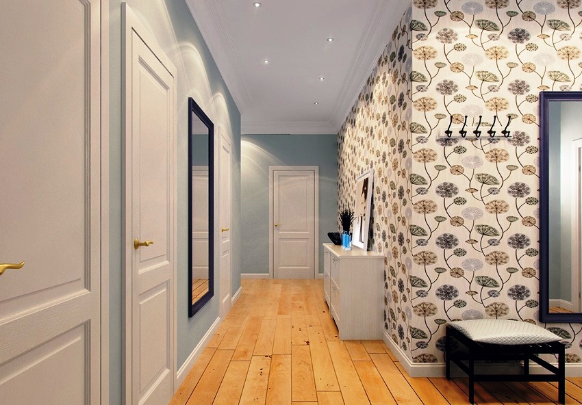 Dengan bantuan kertas dinding, anda dapat menggunakan idea hiasan koridor dengan cara yang menarik dan asli