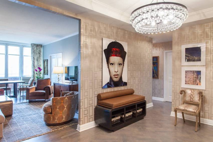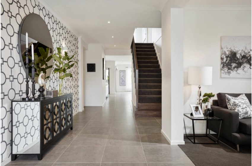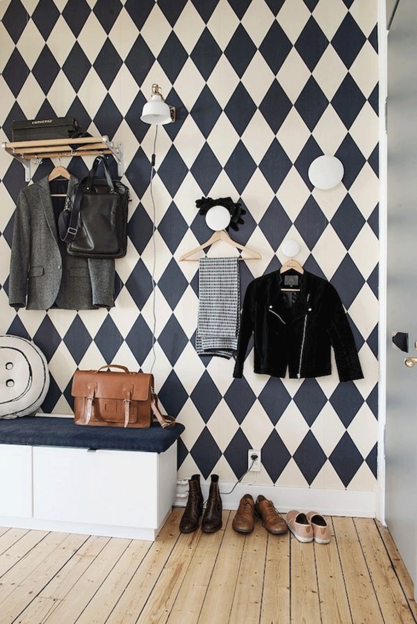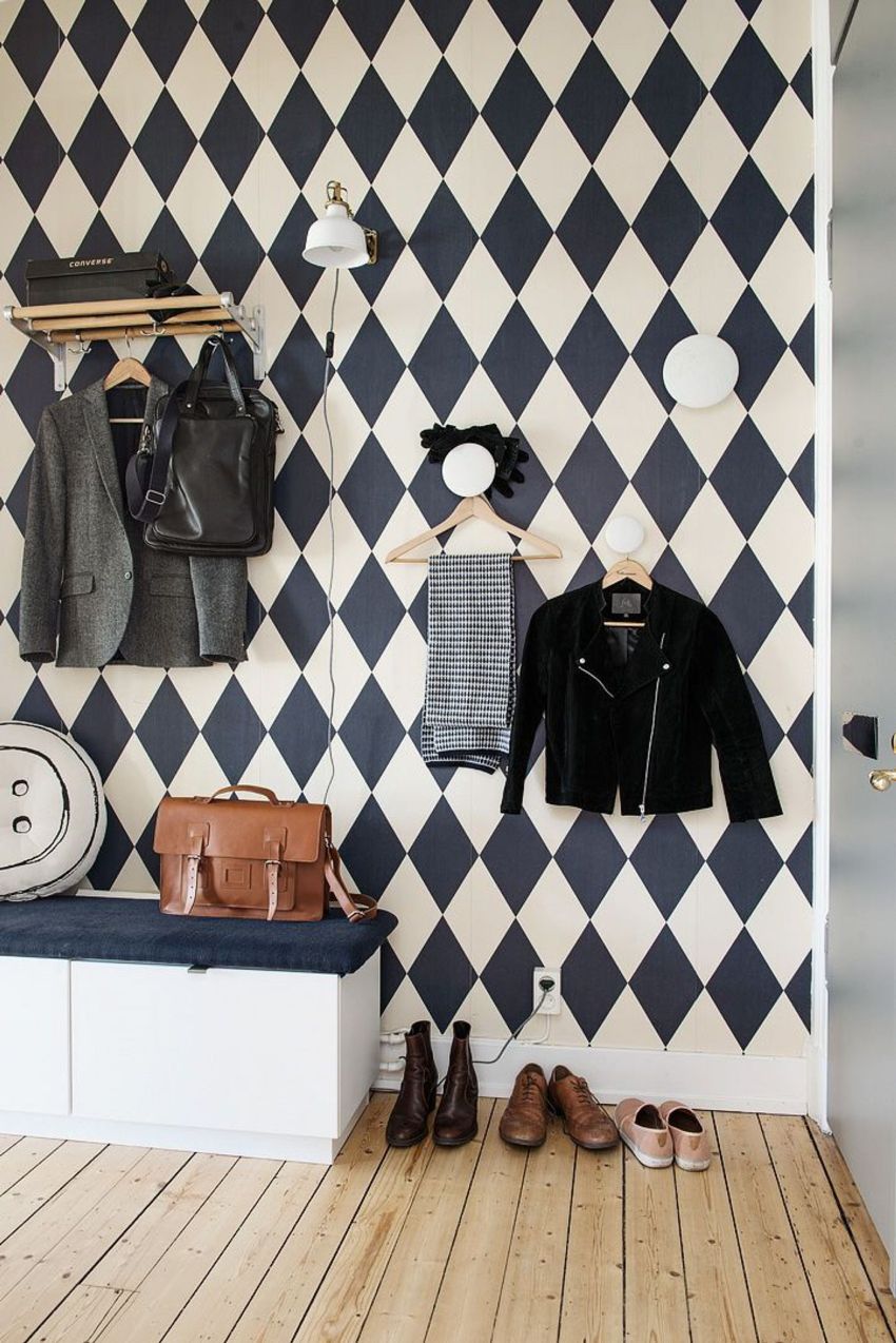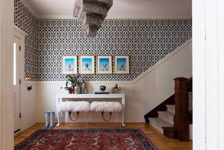 Dengan bantuan kertas dinding, anda dapat menggunakan idea hiasan koridor dengan cara yang menarik dan asli