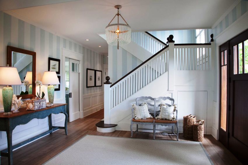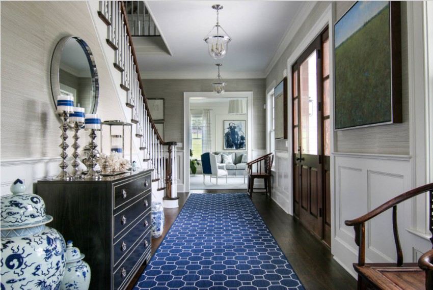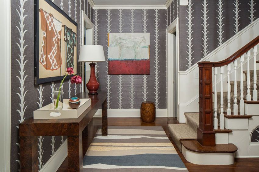 Koridor paling tidak dilindungi dari kotoran jalan, jadi anda harus mengutamakan jenis kertas dinding yang paling tahan lama dan serba boleh