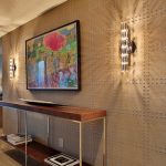 - apabila anda ingin menggunakan kertas dinding gelap, seperti hitam, biru tua, coklat tua atau hijau tua, maka, untuk tidak menyempitkan koridor lebih jauh, anda perlu meletakkan sebilangan besar lampu linier secara melintang di dinding;