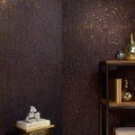 - Bertaburan. Untuk pembuatan produk, asas kertas atau kain digunakan, yang ditutup dengan lapisan kerajang. Dalam gambar kertas dinding di koridor kecil, berkat kilauan khasnya, ia kelihatan menarik.