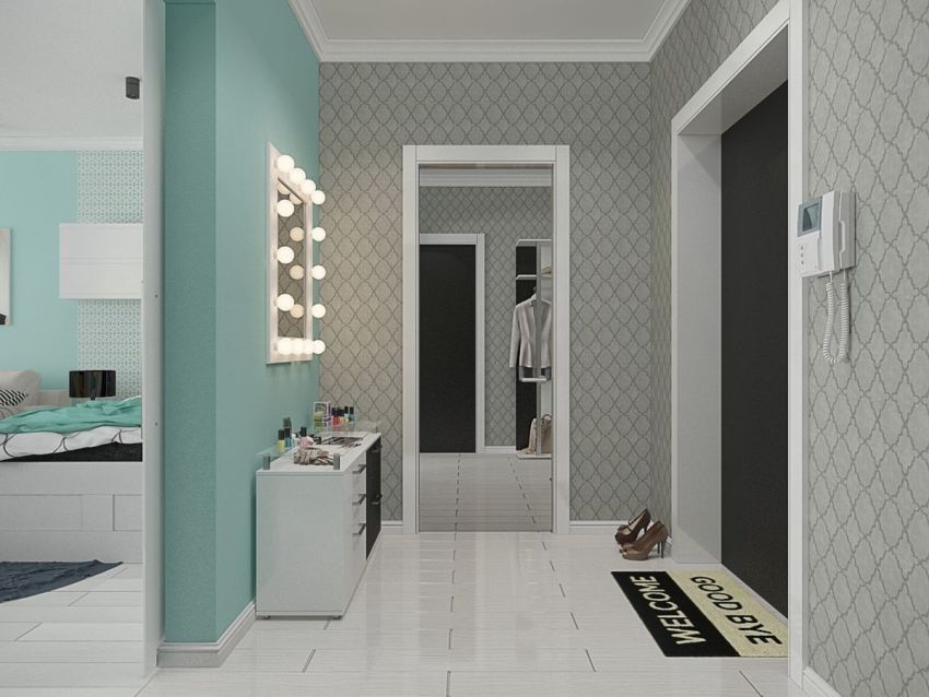 Dengan memilih corak warna dan kertas dinding yang betul, anda boleh membuat reka bentuk koridor yang bergaya dan moden
