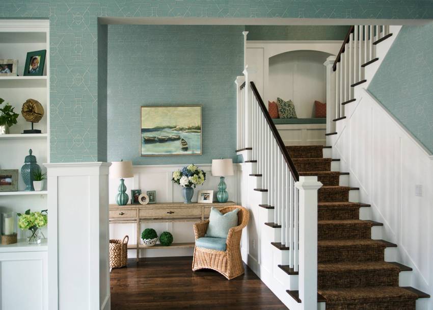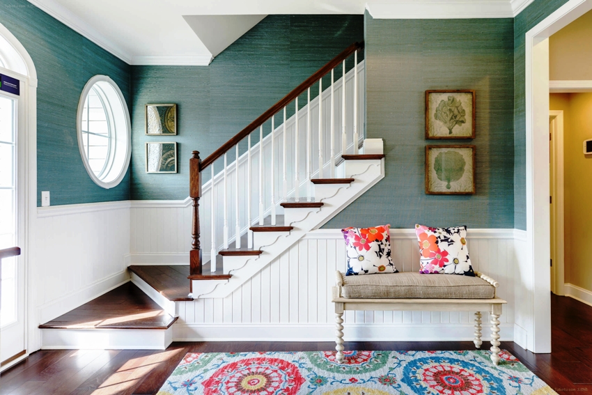 Warna kertas dinding menimbulkan suasana dan suasana di koridor, dan juga dapat mengubahnya secara visual
