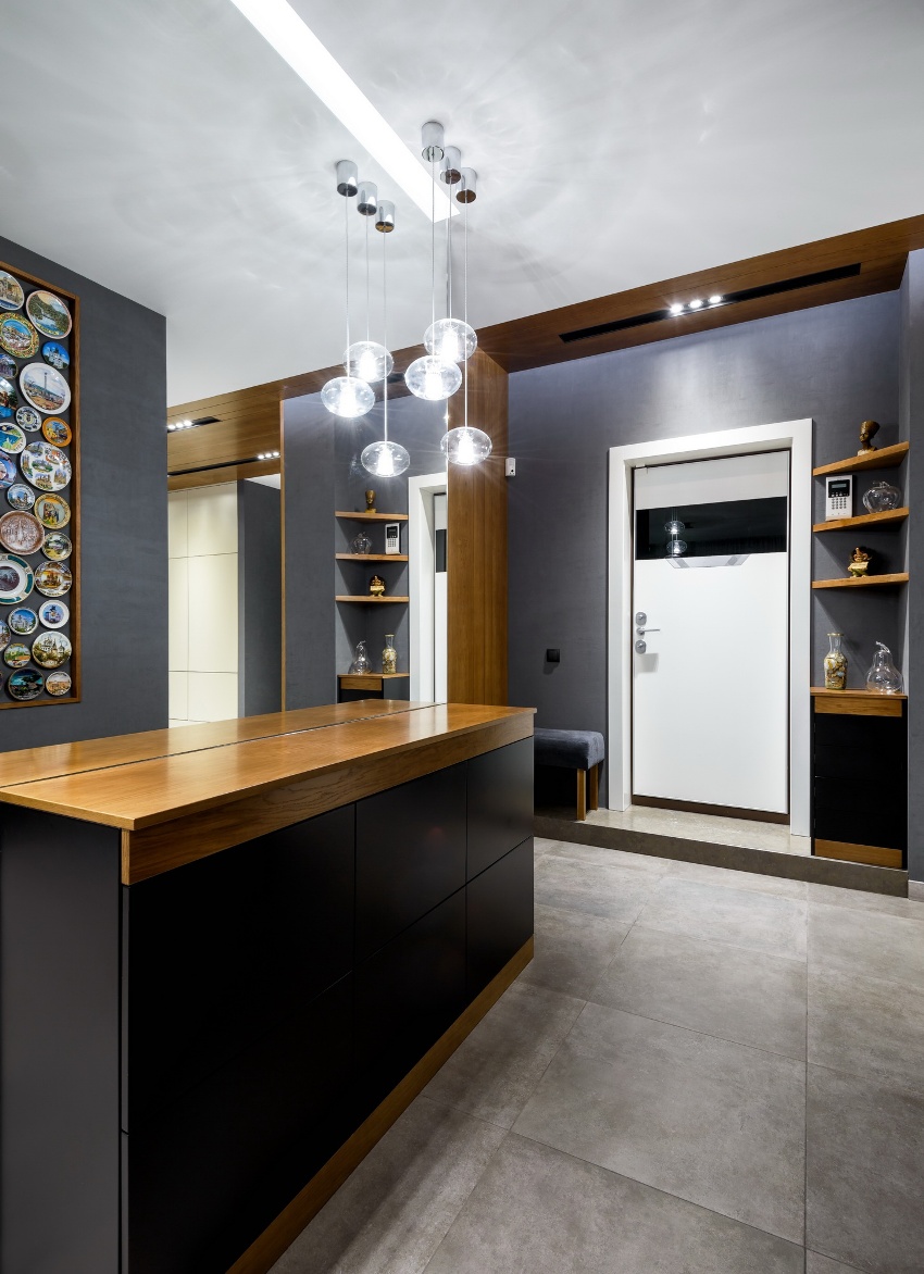 - Lebih baik meninggalkan warna gelap untuk dewan yang luas dan koridor besar.