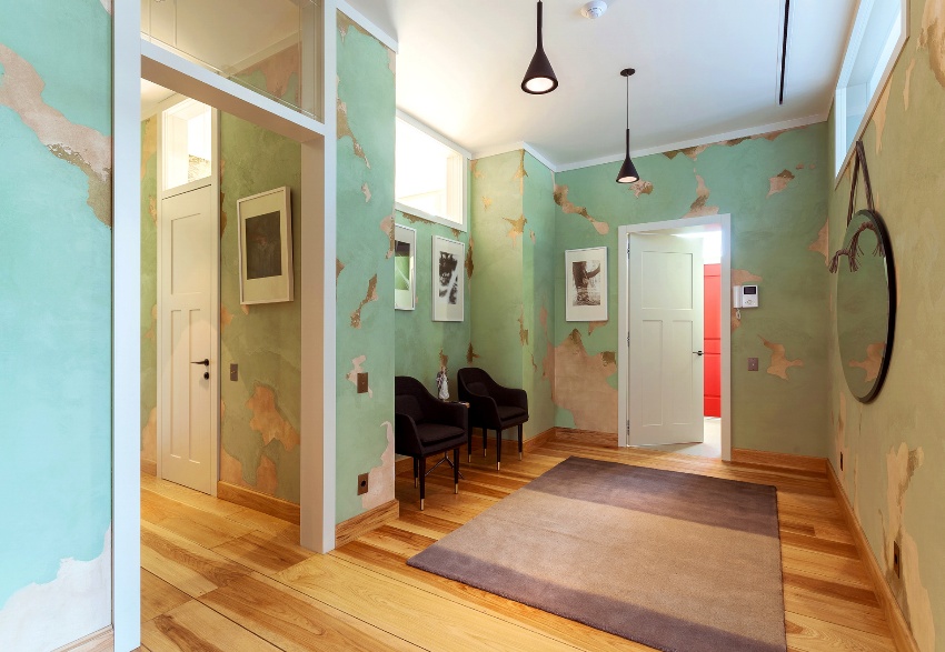 Kertas dinding cecair di koridor kelihatan menarik, mudah dibersihkan dan, lebih-lebih lagi, berfungsi dengan baik selama bertahun-tahun