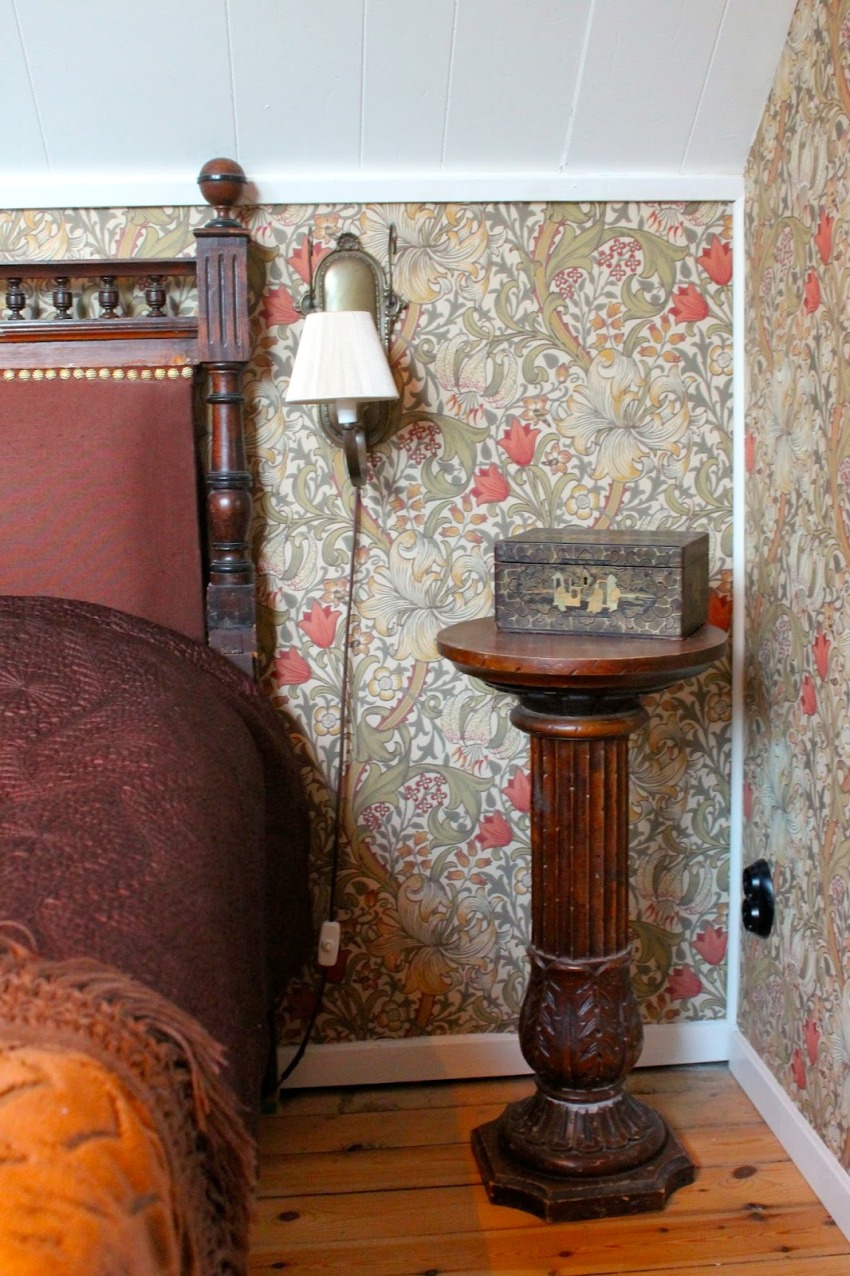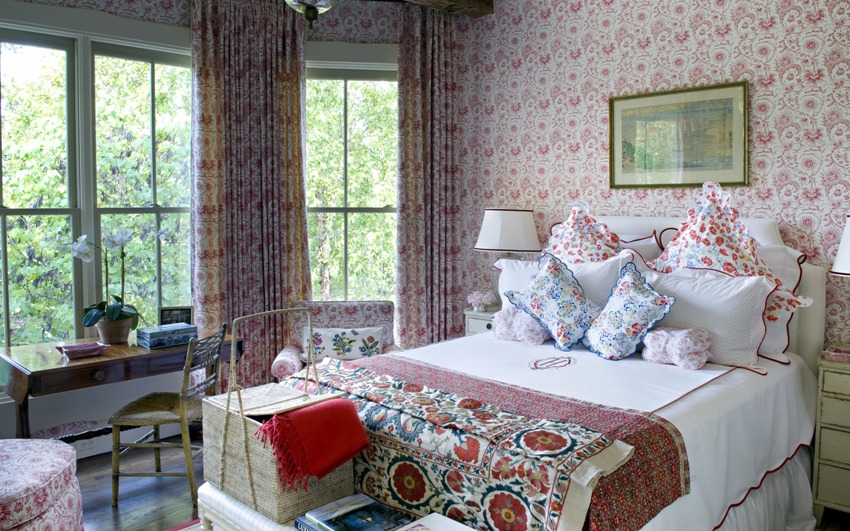 Selalunya, pereka menggunakan sedikit tipu daya - mereka memilih corak kertas dinding yang sesuai dengan cetakan di tempat tidur, langsir dan alas meja
