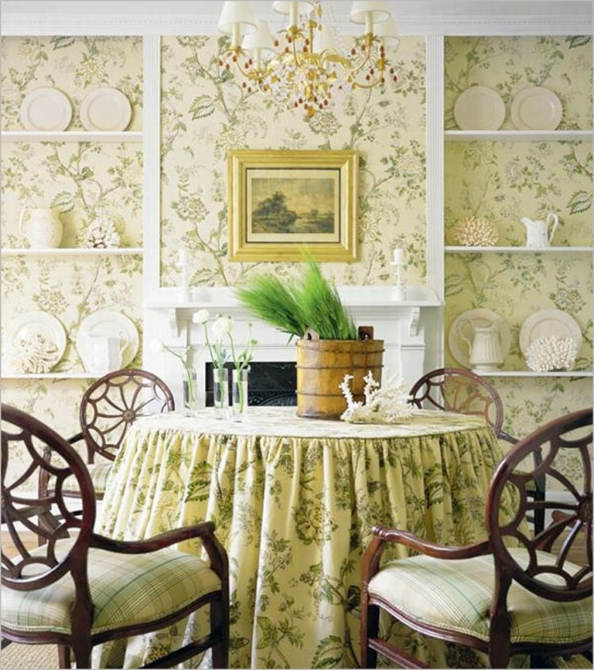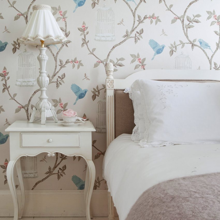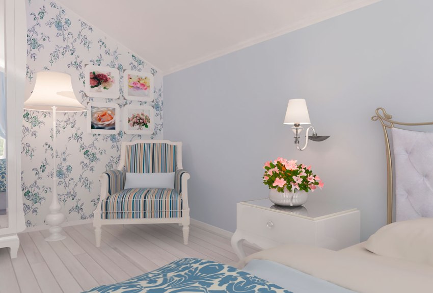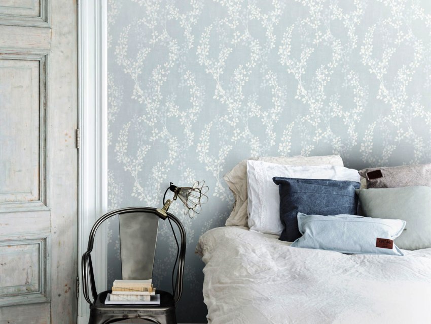 Kertas dinding gaya Provence mewujudkan suasana yang tenang dan selesa walaupun tanpa aksesori besar.