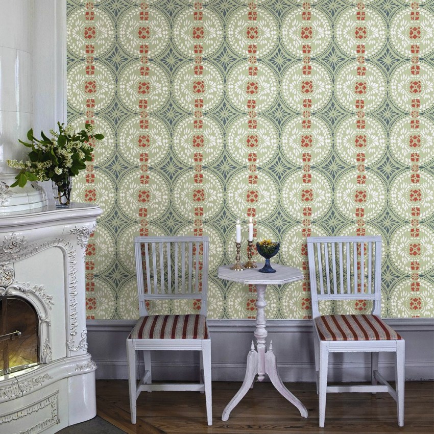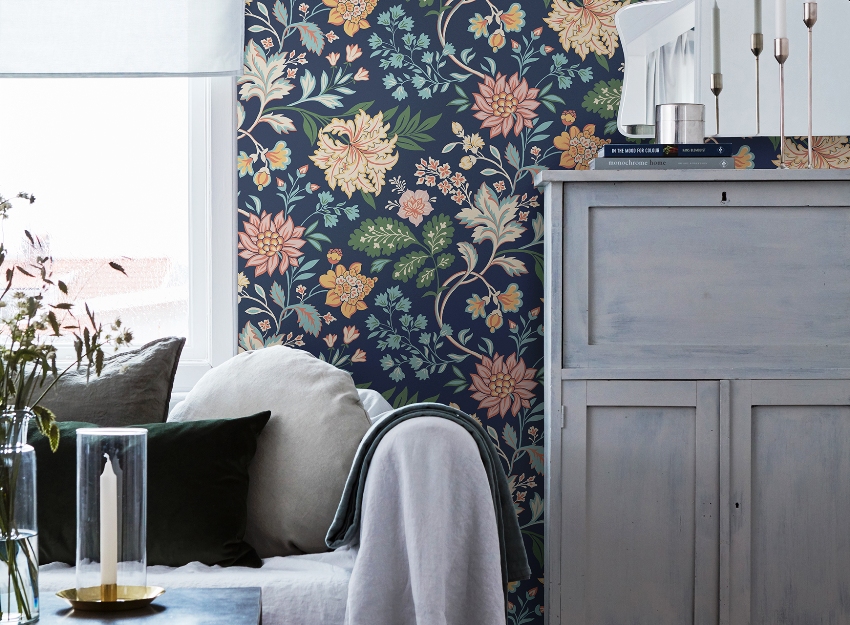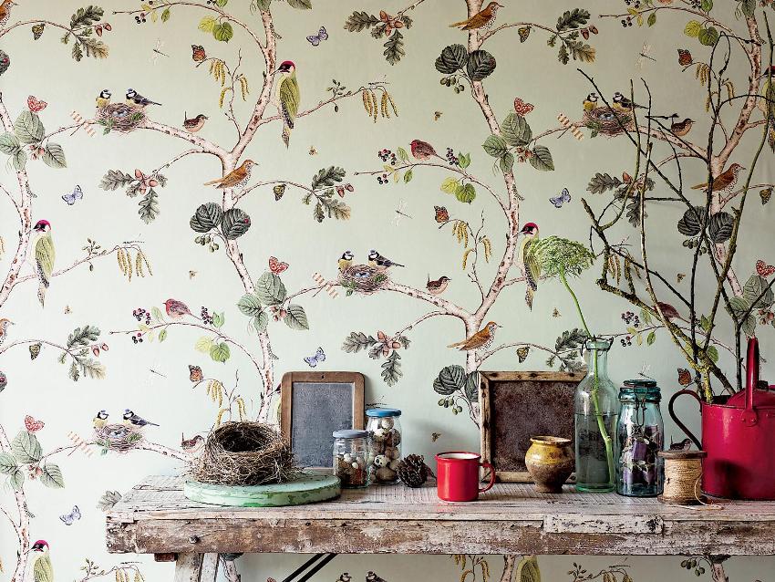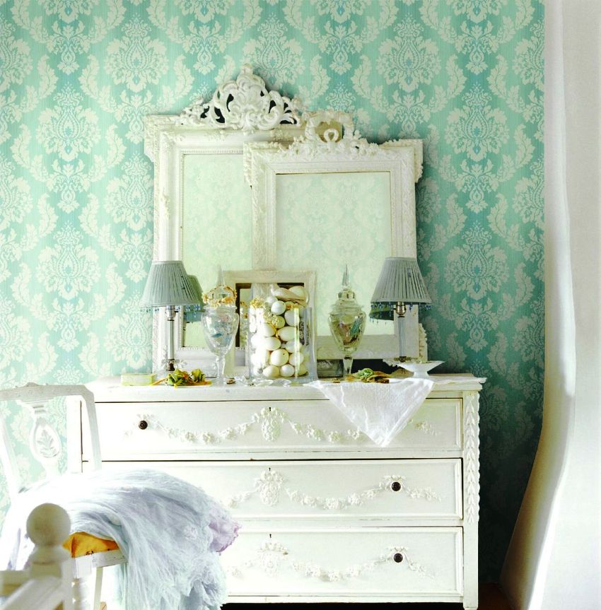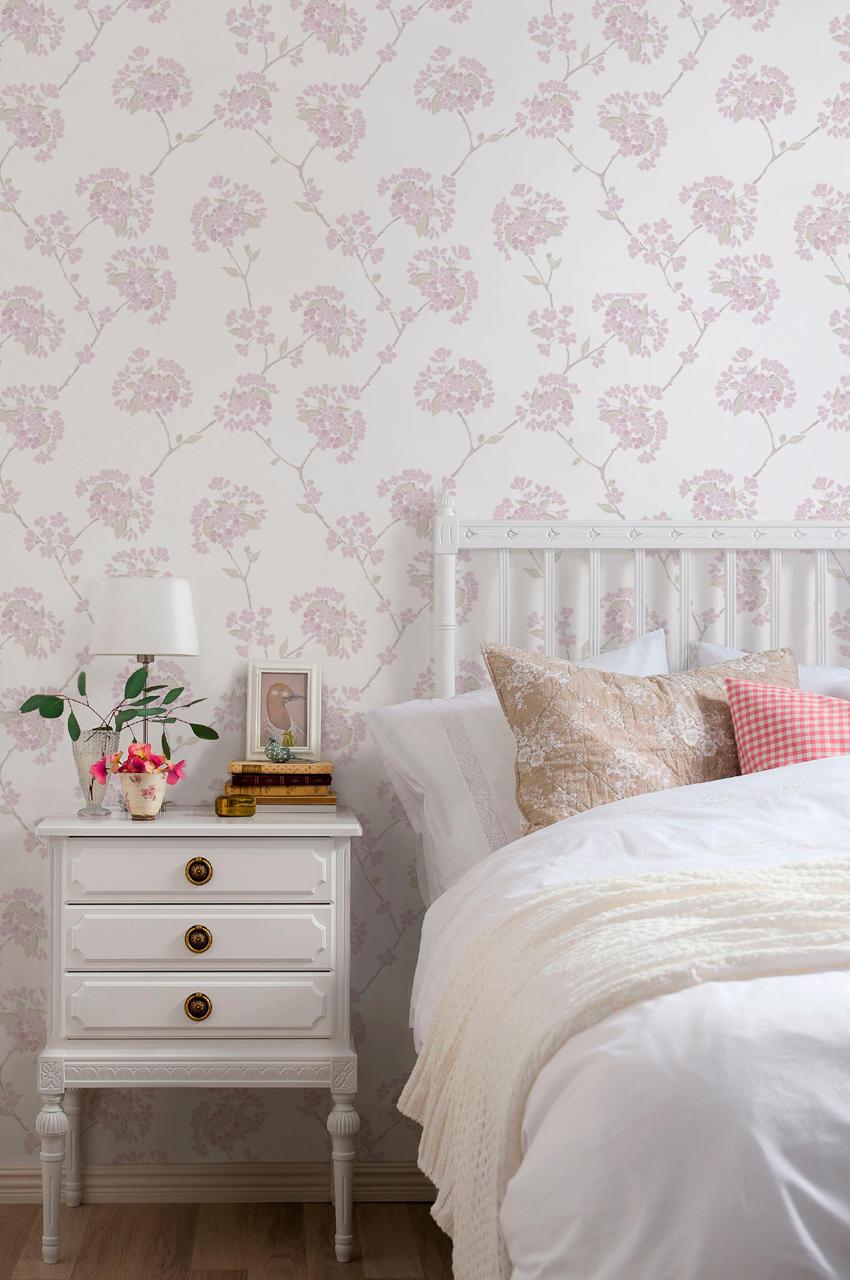 Kertas dinding gaya Provence mewujudkan suasana yang tenang dan selesa walaupun tanpa aksesori besar.