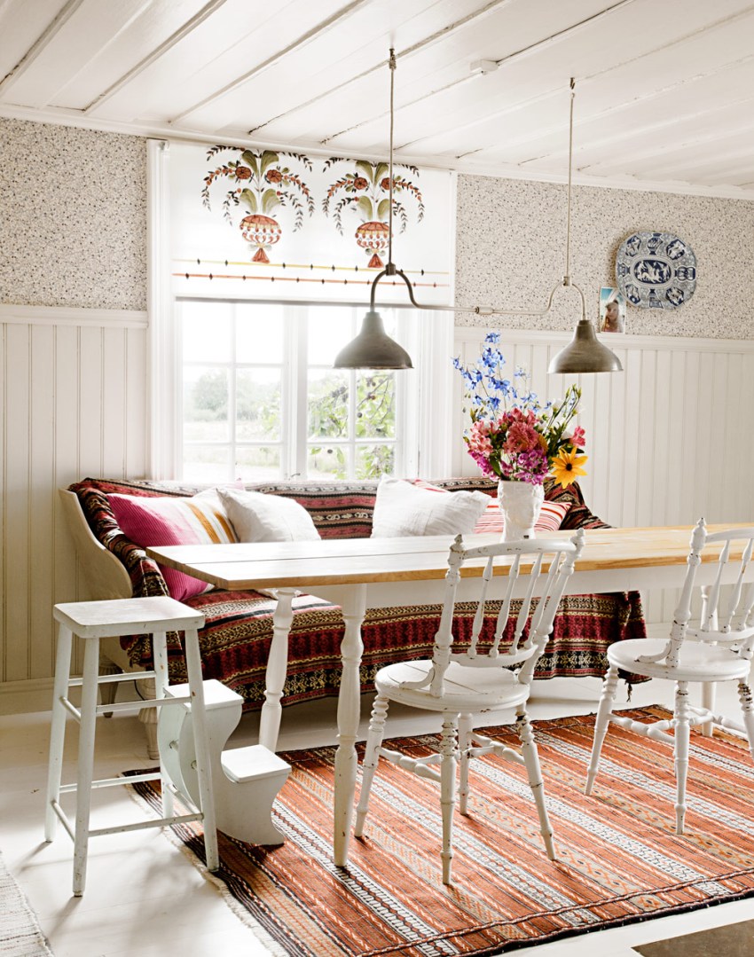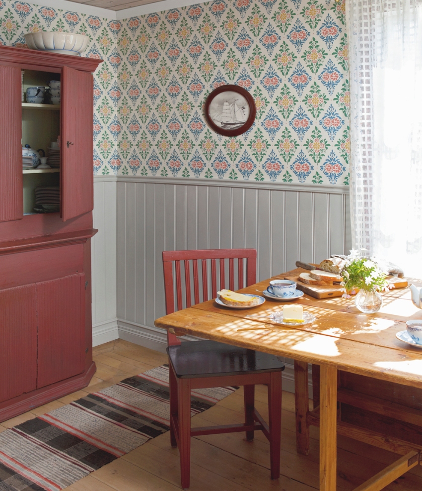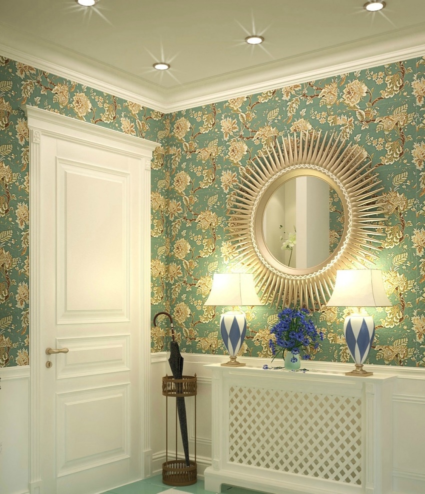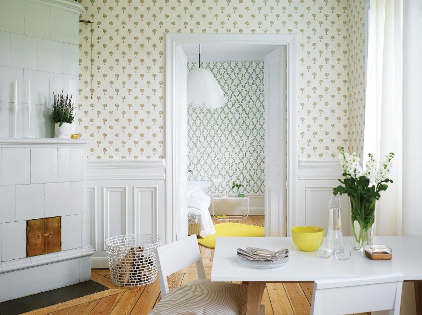 - kertas dinding boleh digabungkan dengan plaster hiasan, panel kayu, bata atau batu.