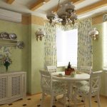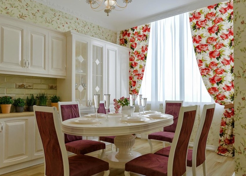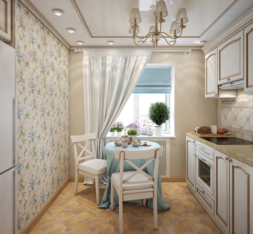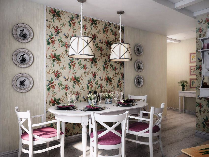 Kertas dinding gaya Provence untuk dapur harus dipilih, dengan fokus pada kemungkinan gabungan yang harmoni dengan bahan penamat lain
