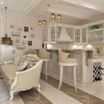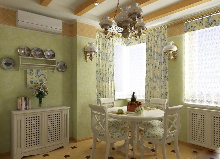 Spektrum warna Bahagian dalaman Provencal harus ringan dan hangat, kecerahan berlebihan dalam reka bentuk sedemikian tidak dapat diterima