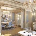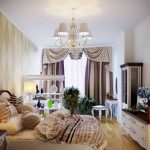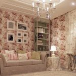 - untuk meningkatkan jumlah ruang bilik, perlu memberi keutamaan kepada kertas dinding dengan unsur-unsur kecil yang akan kelihatan cantik tanpa adanya perabot tinggi, yang jelas ditunjukkan oleh gambar kertas dinding gaya negara;