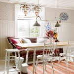 - untuk meningkatkan ketinggian bilik secara visual, bahagian bawah dinding dapat dihiasi dengan warna yang lebih gelap daripada siling dan bahagian atas dinding;