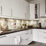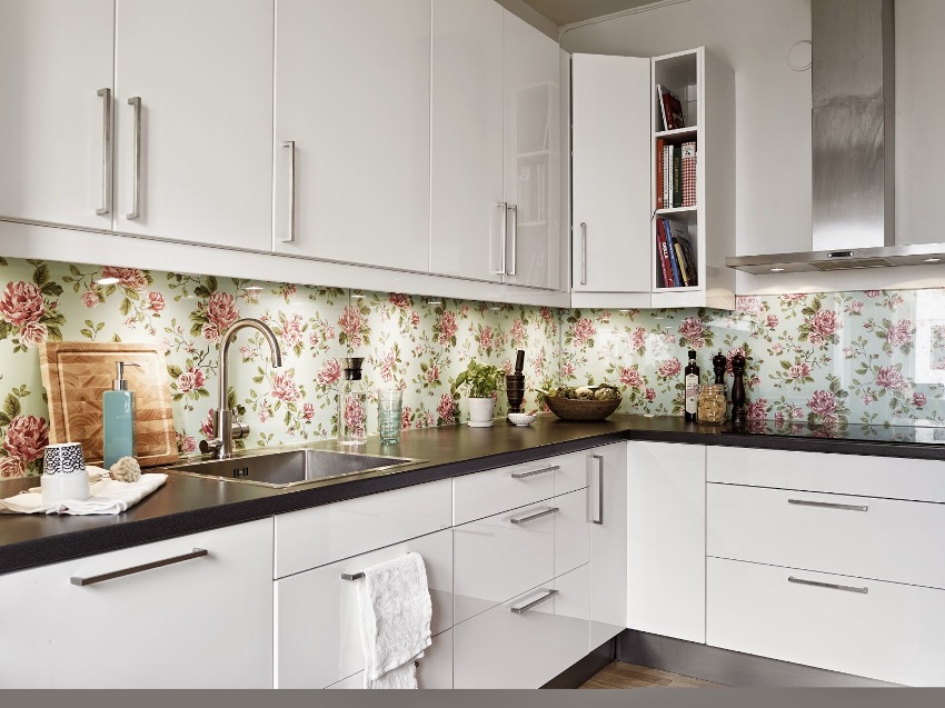 Antara lapisan berpola, yang popular adalah kertas dinding dengan bunga kecil, dengan corak kotak, gambar peralatan dapur, pokok, rumah, elemen landskap. Kemasan ini dapat digabungkan secara harmoni dengan bata atau jubin. Semua kemasan harus dalam warna yang serupa dengan nada. Jika tidak, bahagian dalam akan terlalu bertentangan dan tepu.