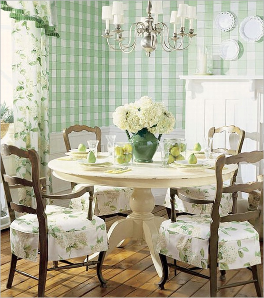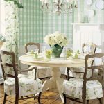 Dari corak cetakan dan kertas dinding dalam gaya Provence, yang paling popular adalah bunga, tumbuh-tumbuhan, perhiasan kotak-kotak, dan juga gambar kecil dari pokok.